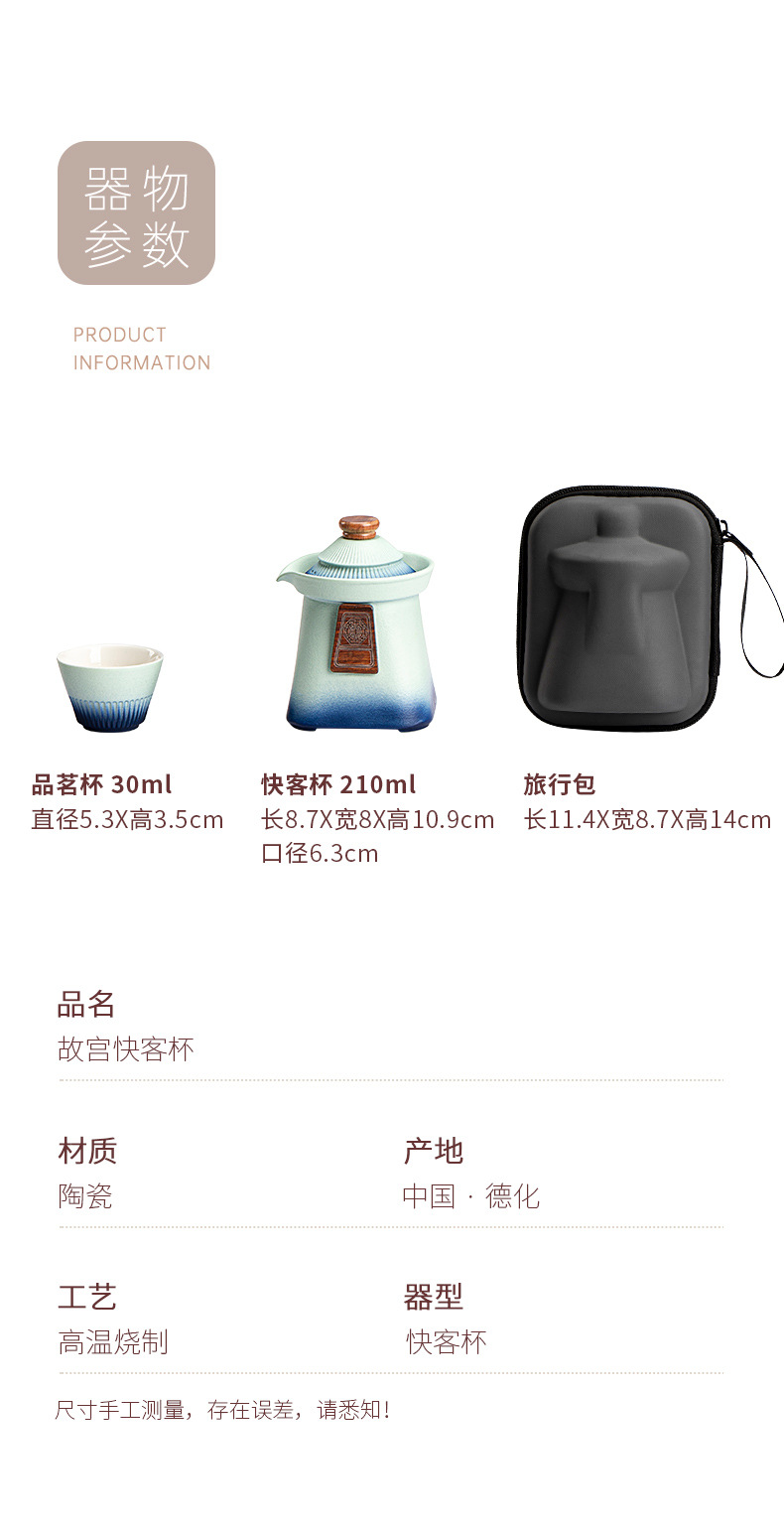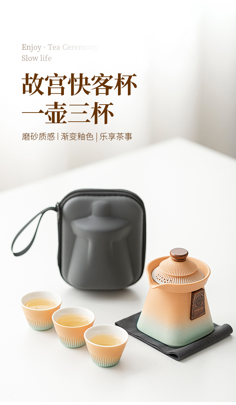 故宫文创便携式旅行茶具套装旅游露营户外快客杯一壶三杯茶杯