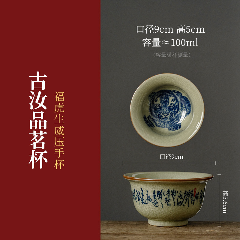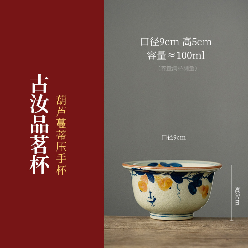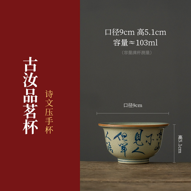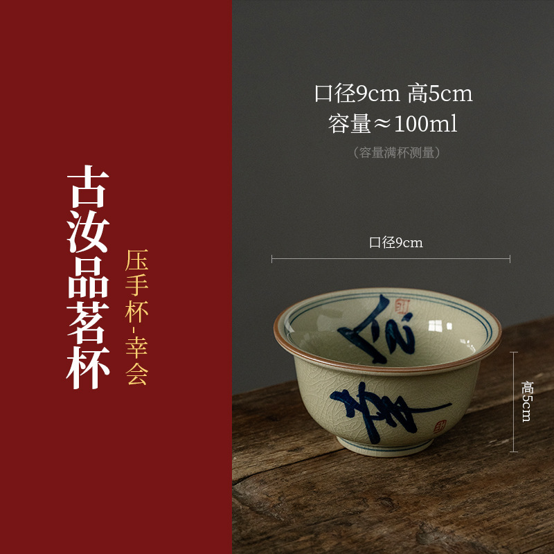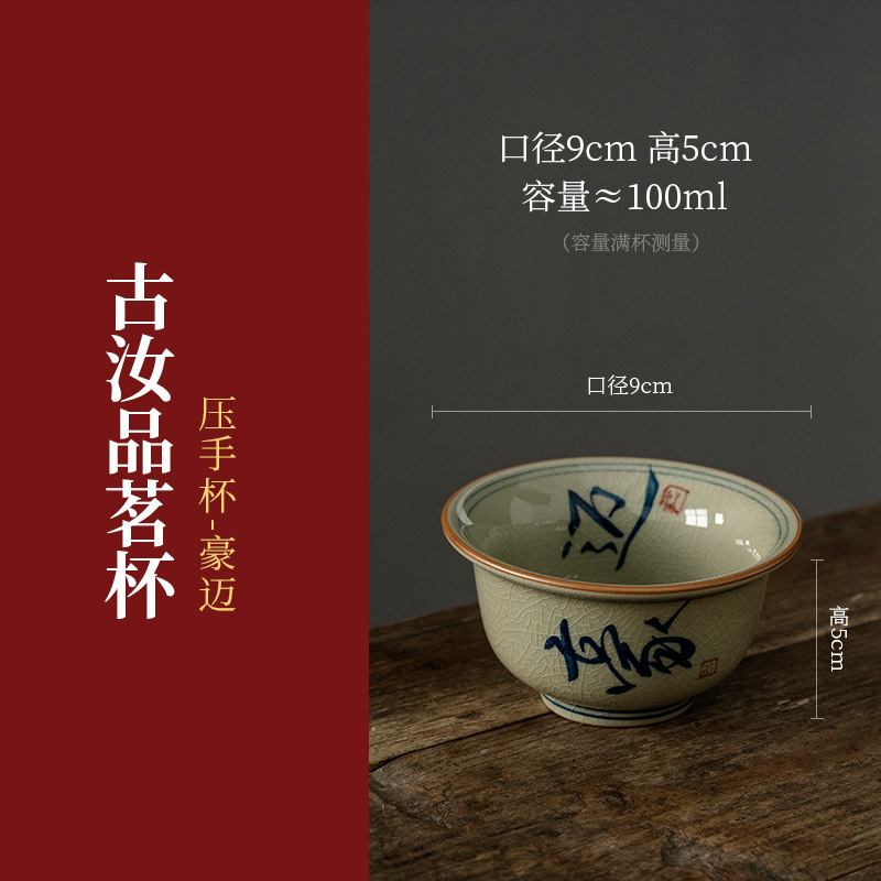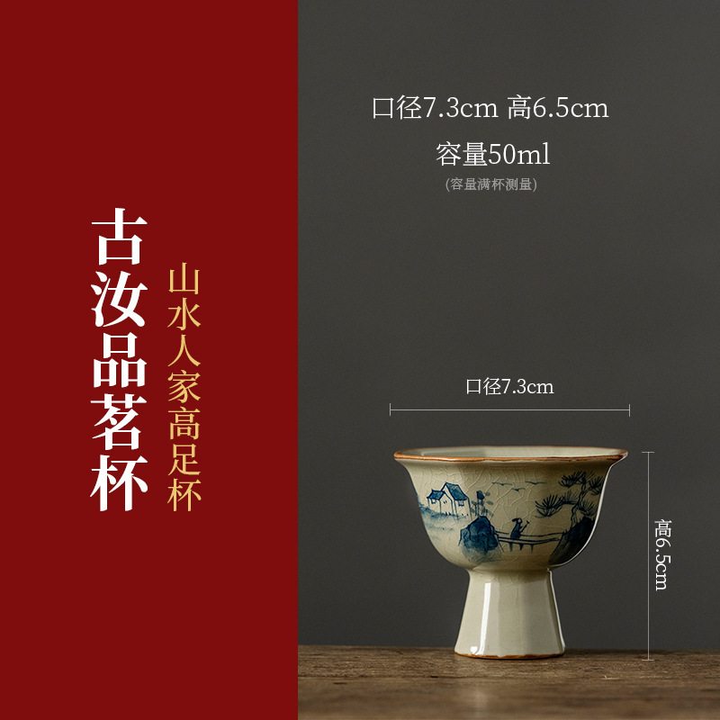 老泥土青花山水手绘主人杯压手杯品茗杯陶瓷中式功夫茶具茶杯批发