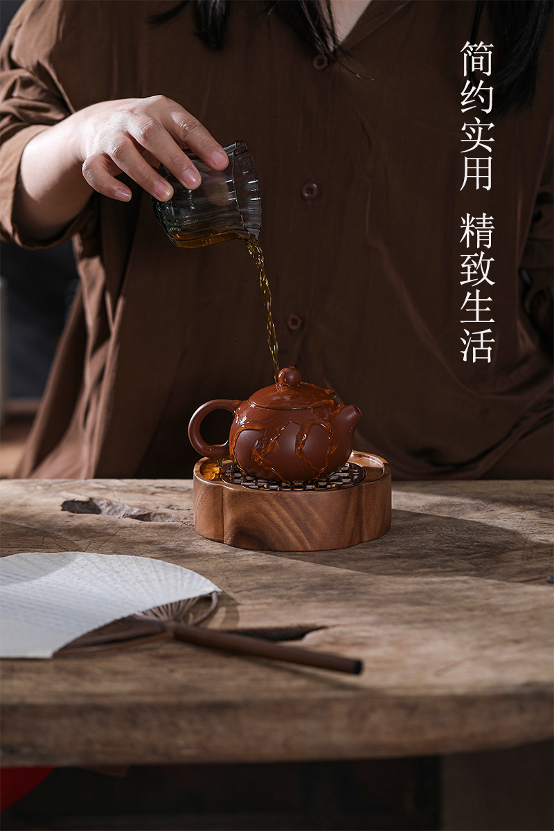 胡桃木壶承轻奢高档茶盘小型功夫茶具配件储水干泡台家用沥水茶托