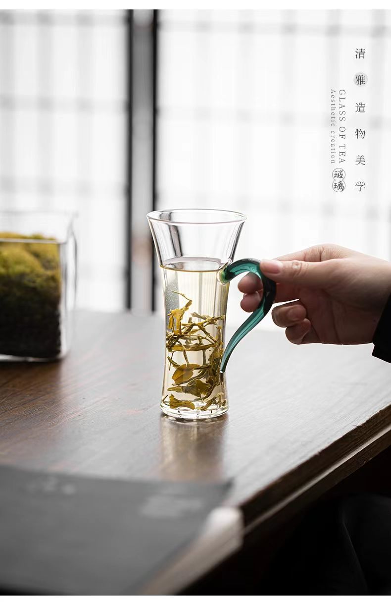 玻璃杯加厚高硼硅绿茶杯男士喝茶专用泡茶杯带把手办公室喝水杯子
