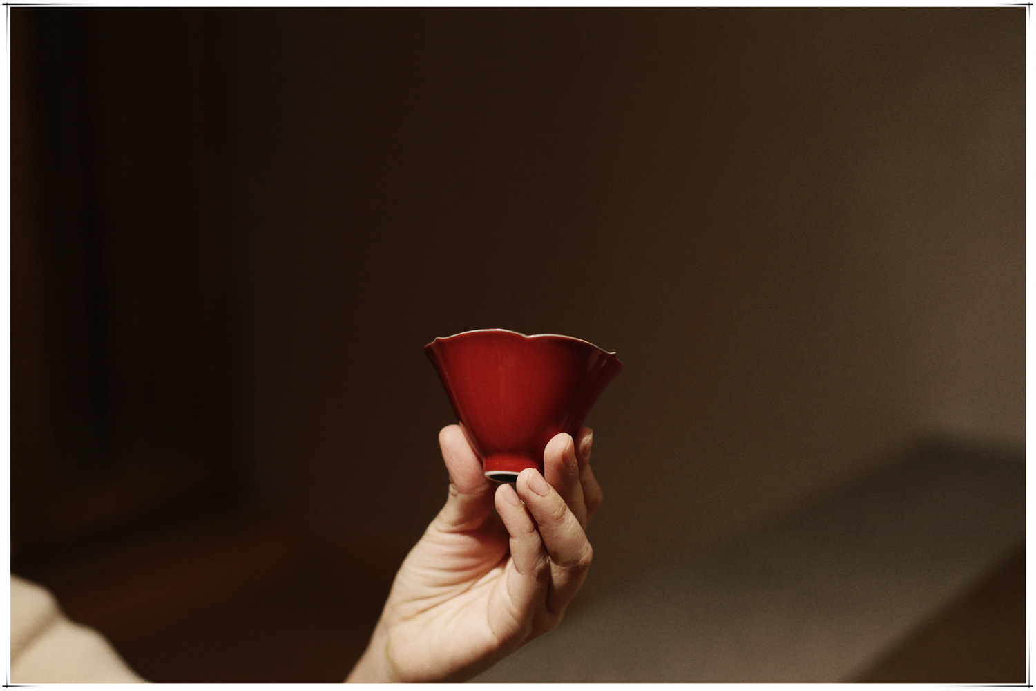 工匠家品故宫红荷口斗笠杯主人杯个人杯茶杯红色敬茶杯茶具陶瓷