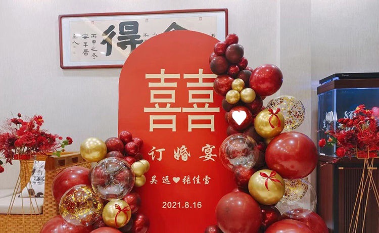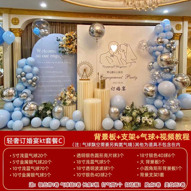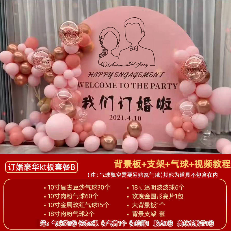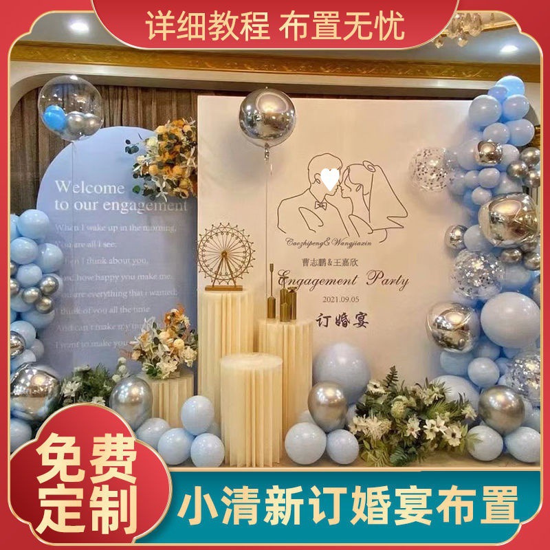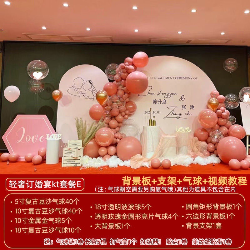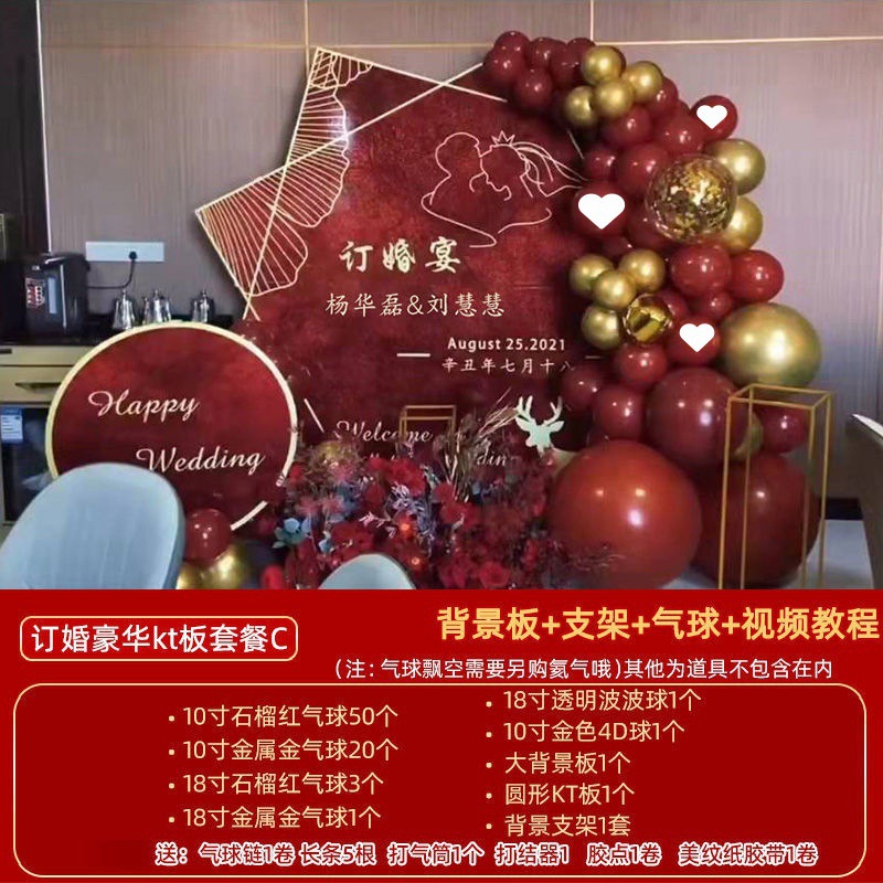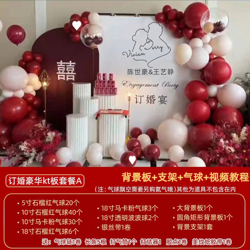 订婚布置中国风网红婚礼回门宴背景墙气球装饰用品大全套餐kt板