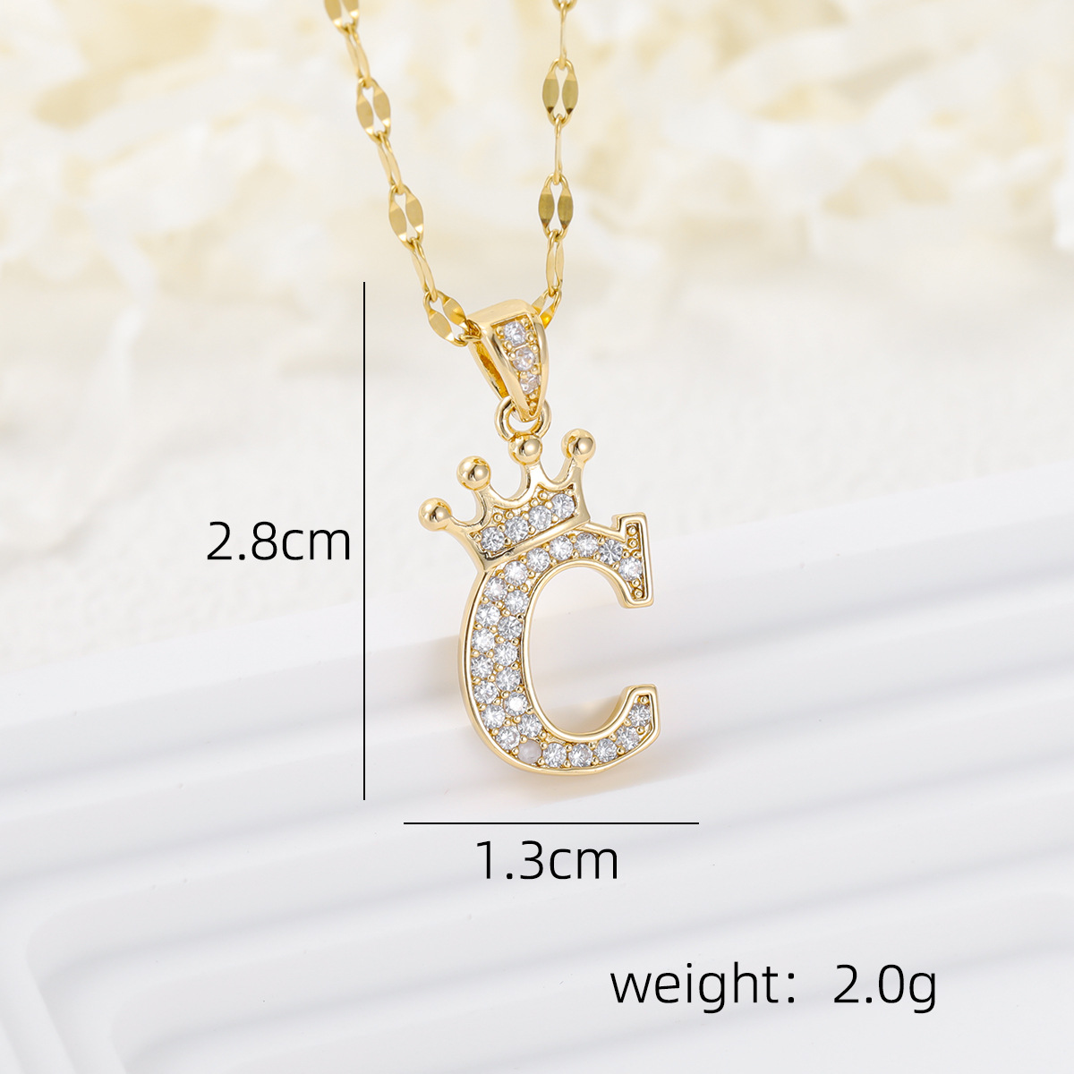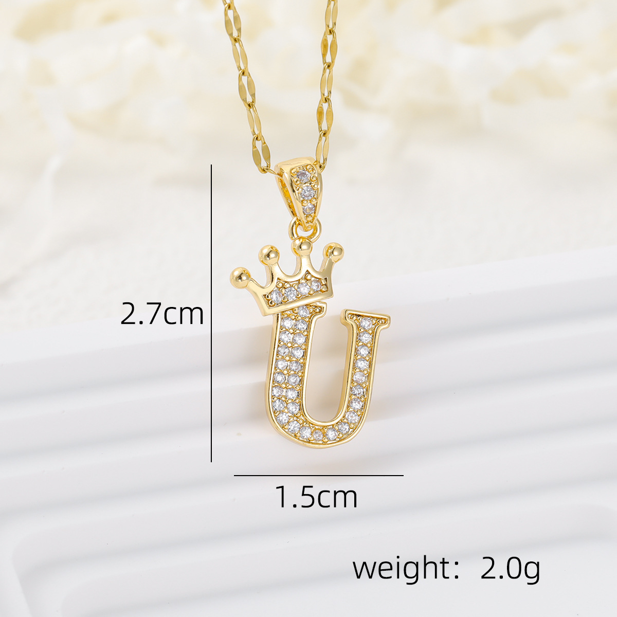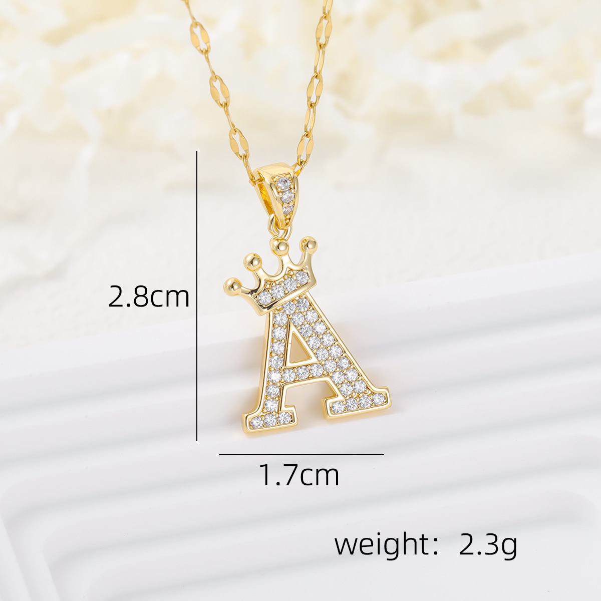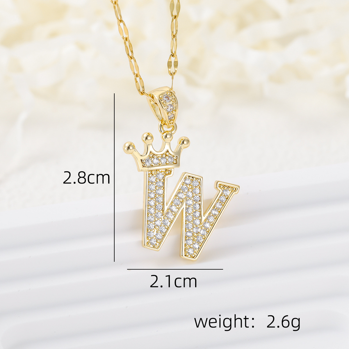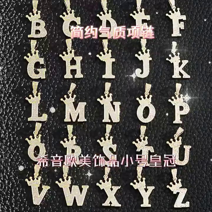 饰品亚马逊单层皇冠26英文字母吊坠项链饰品配饰铜镶锆石锁骨链