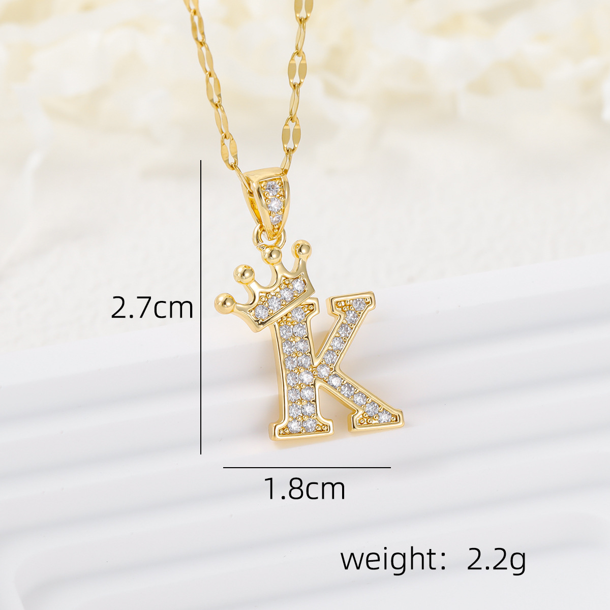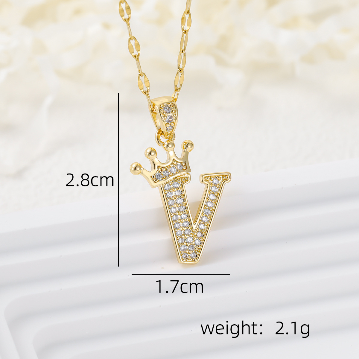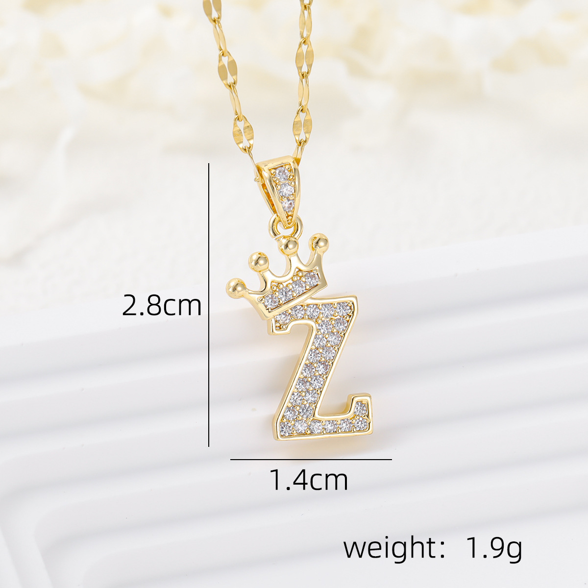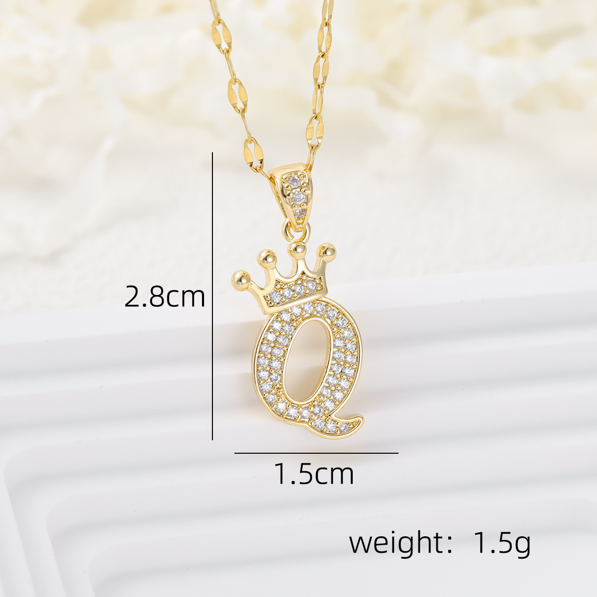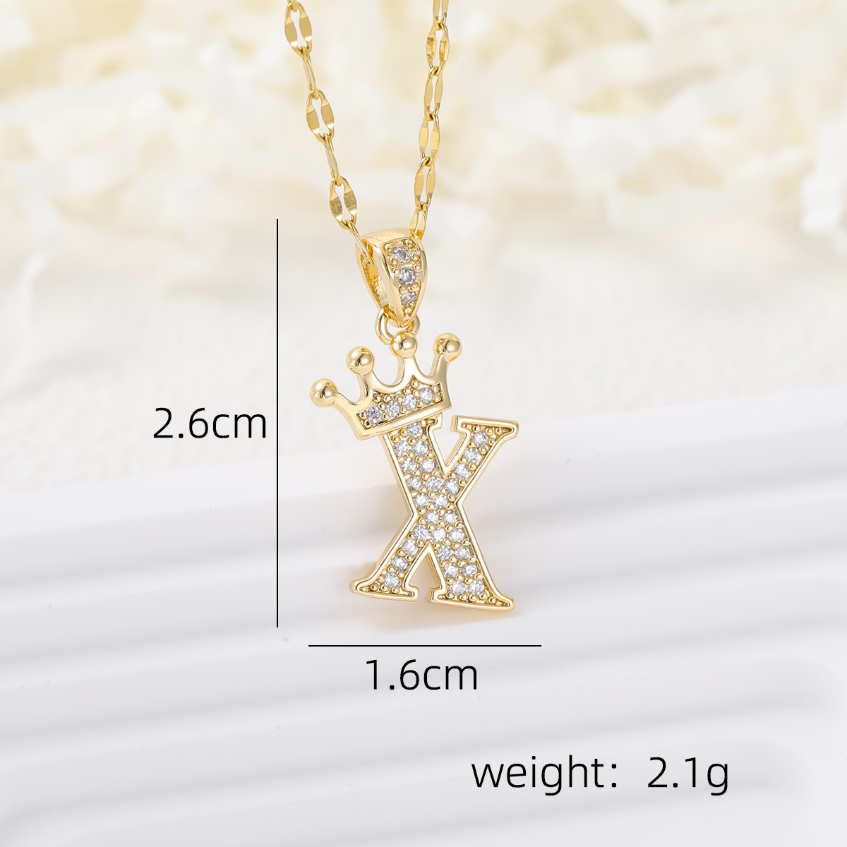 饰品亚马逊单层皇冠26英文字母吊坠项链饰品配饰铜镶锆石锁骨链