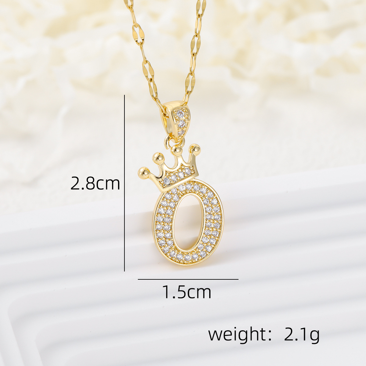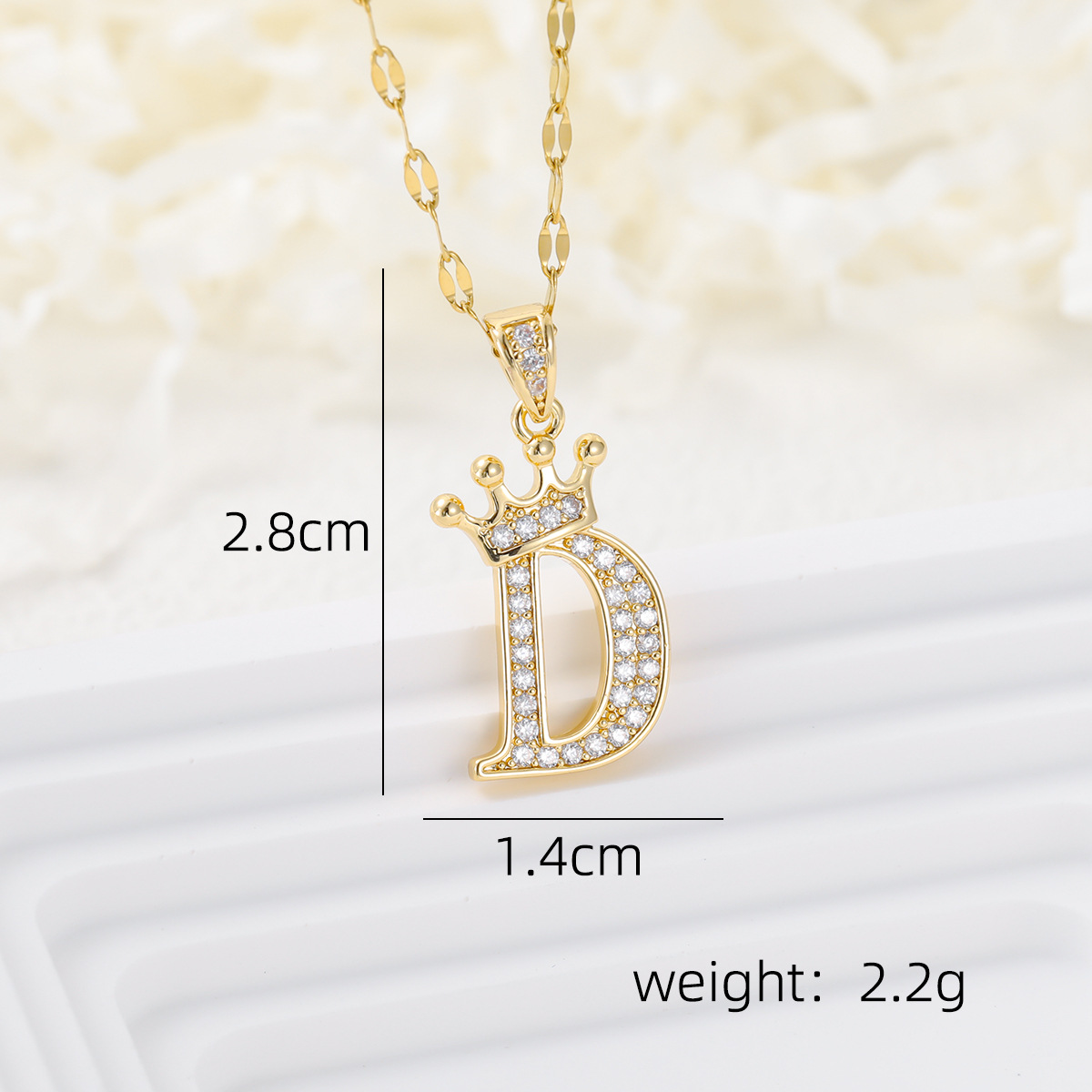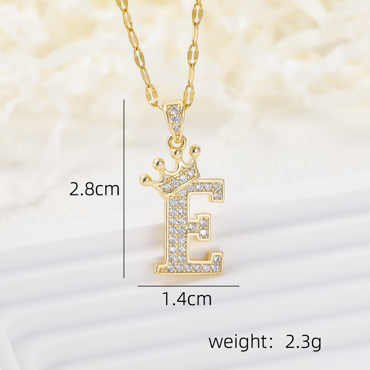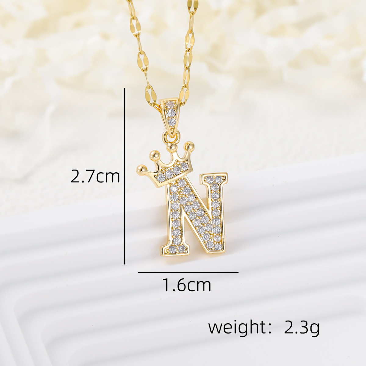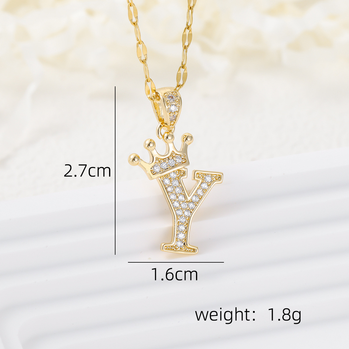 饰品亚马逊单层皇冠26英文字母吊坠项链饰品配饰铜镶锆石锁骨链