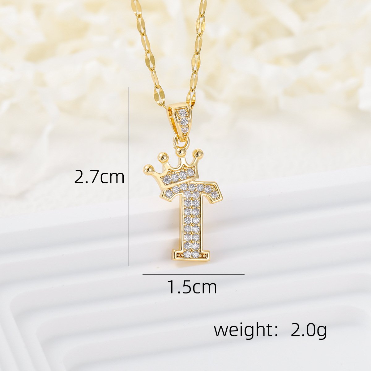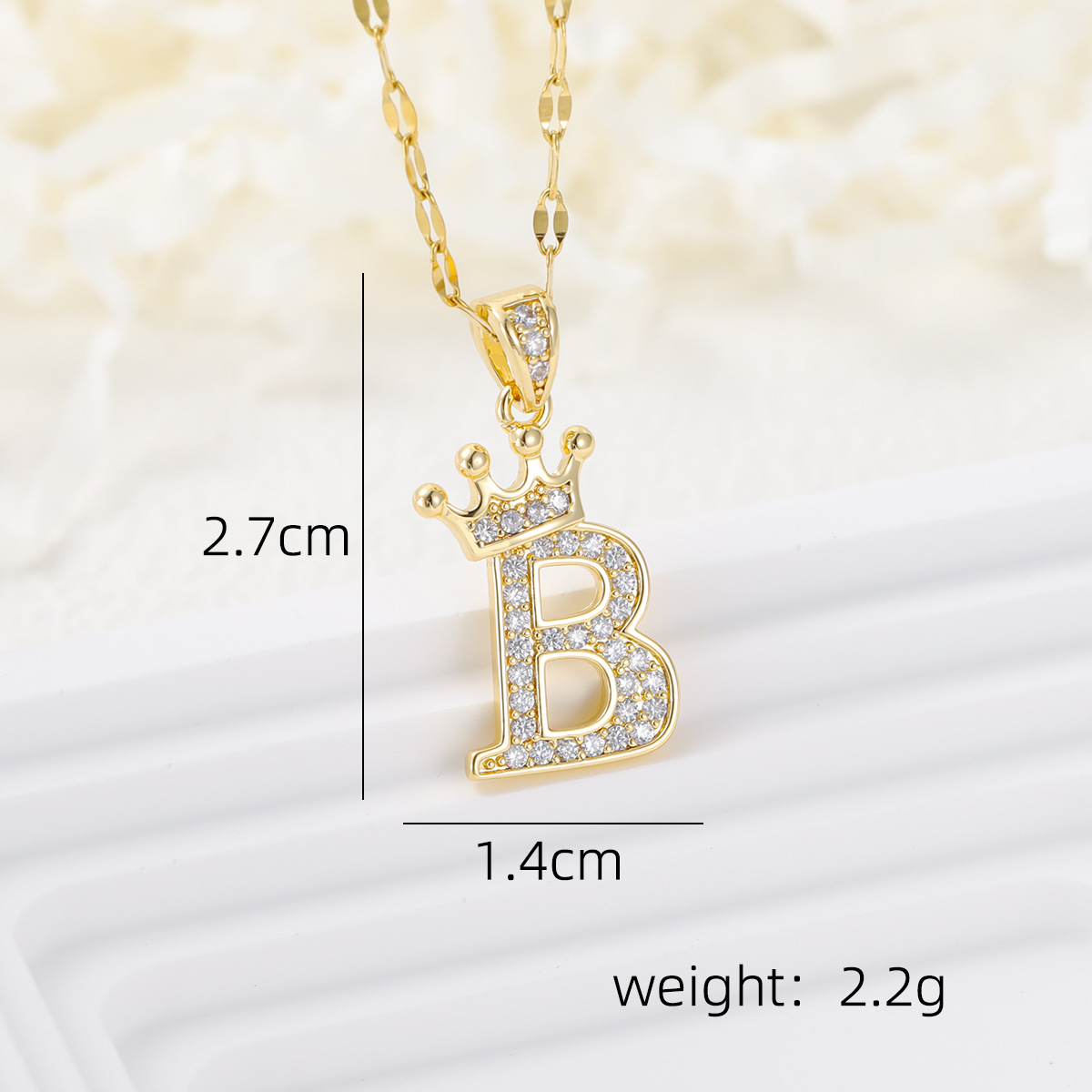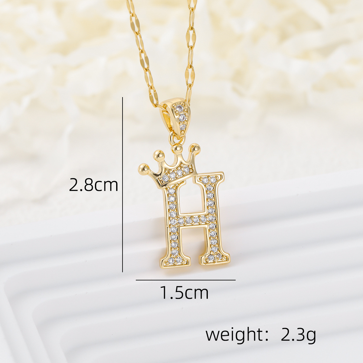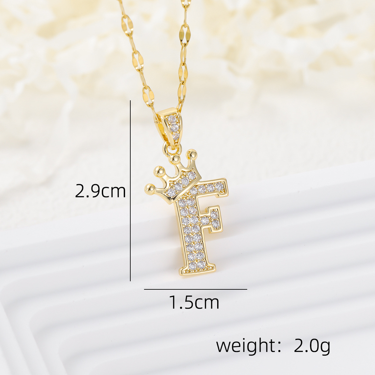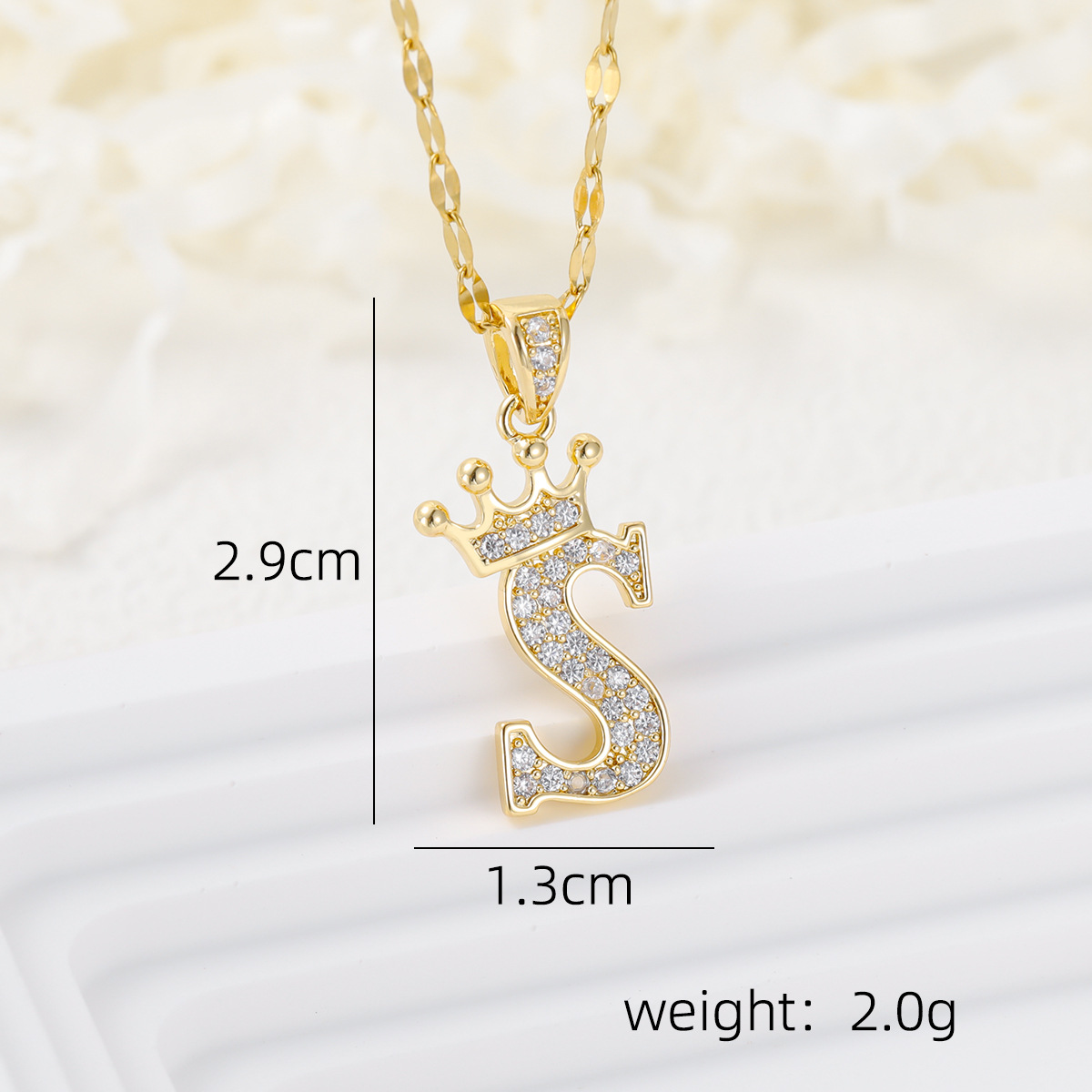 饰品亚马逊单层皇冠26英文字母吊坠项链饰品配饰铜镶锆石锁骨链