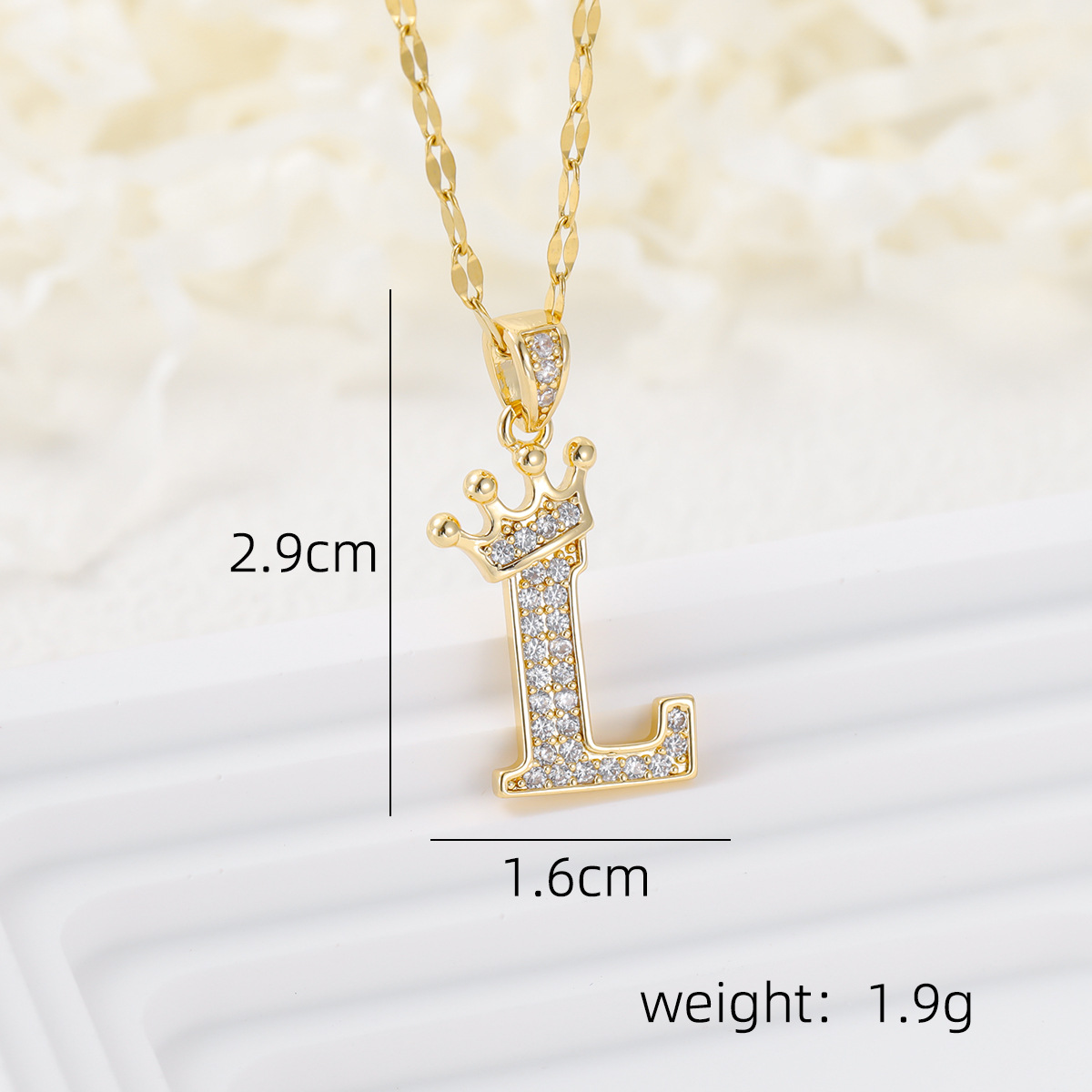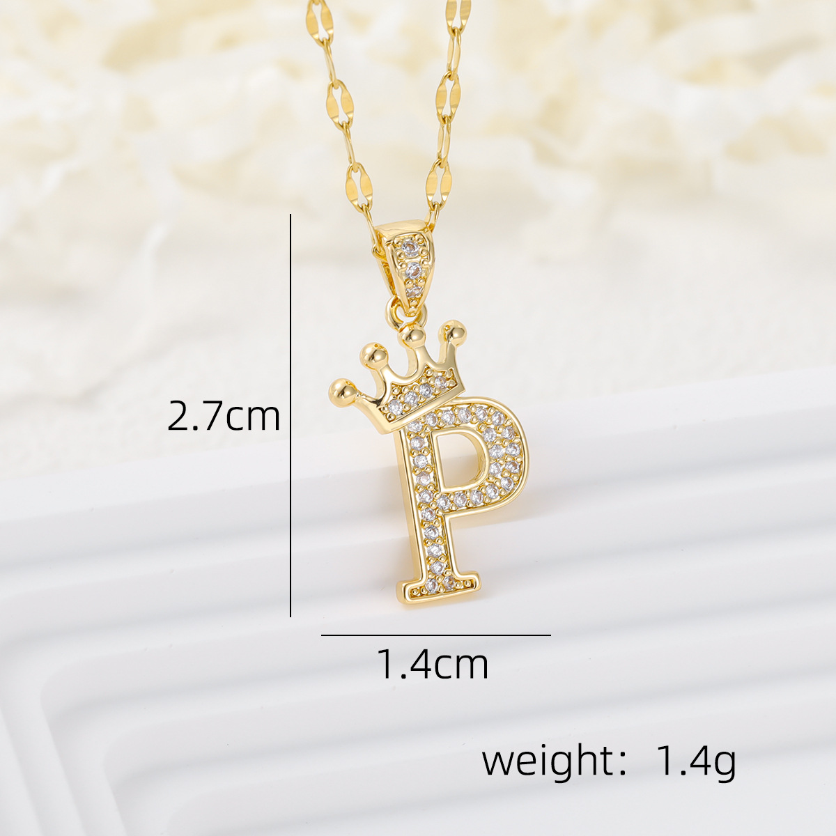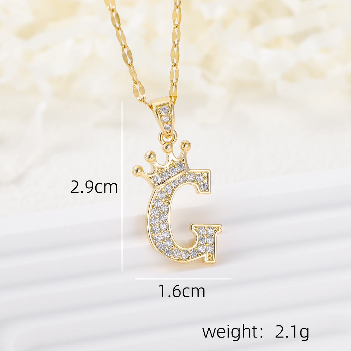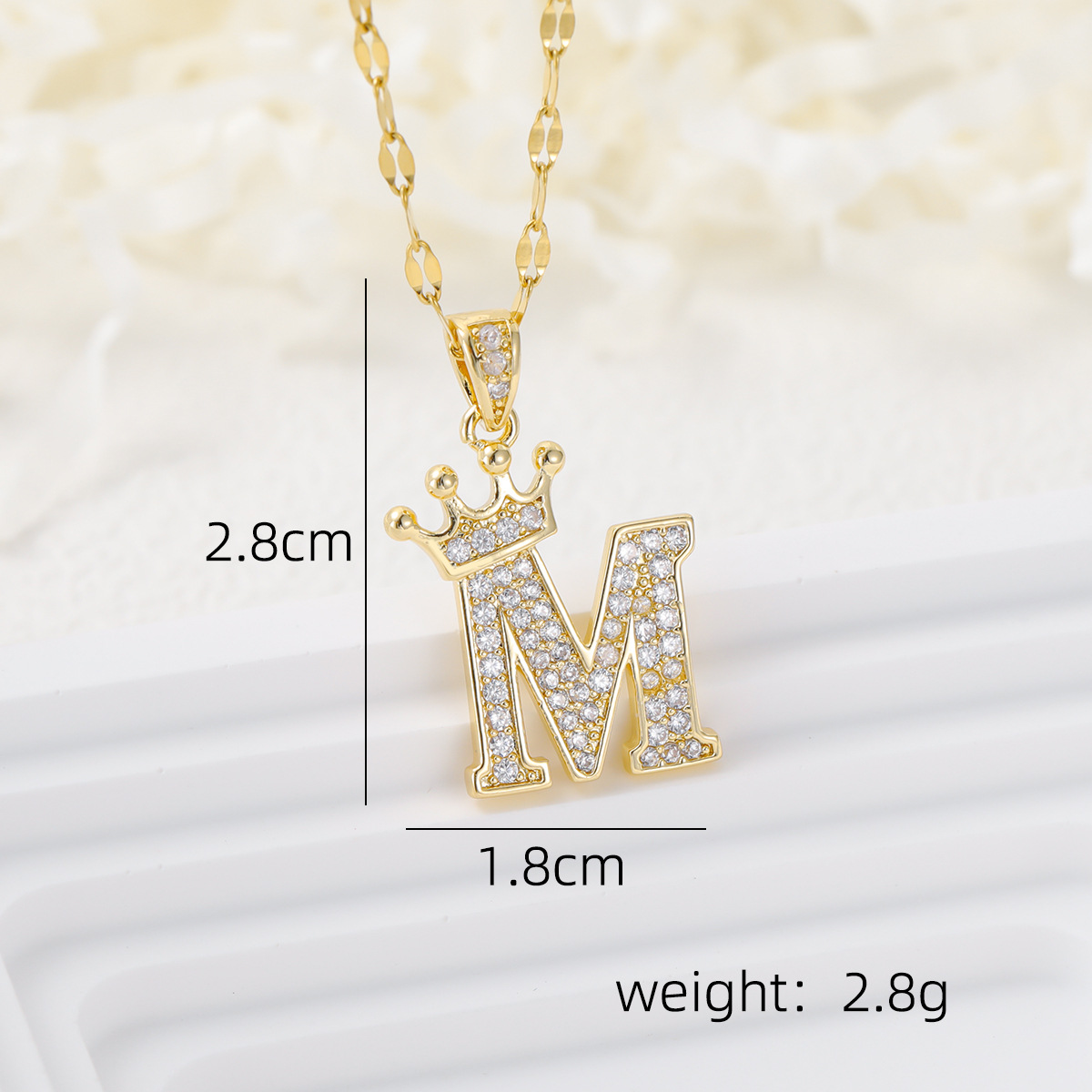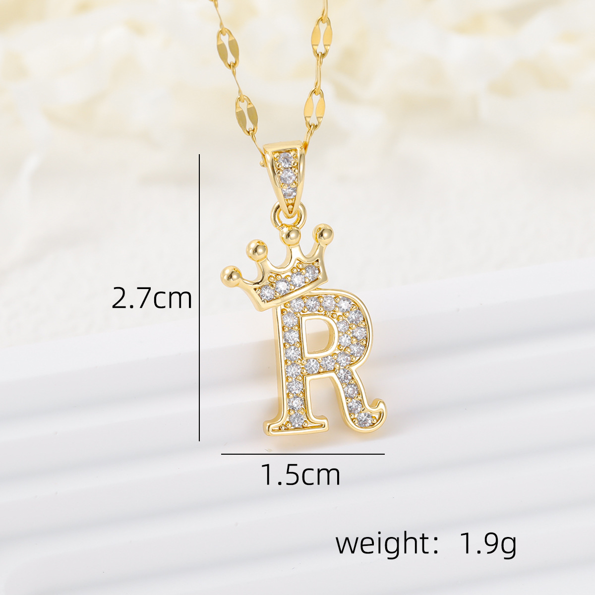 饰品亚马逊单层皇冠26英文字母吊坠项链饰品配饰铜镶锆石锁骨链