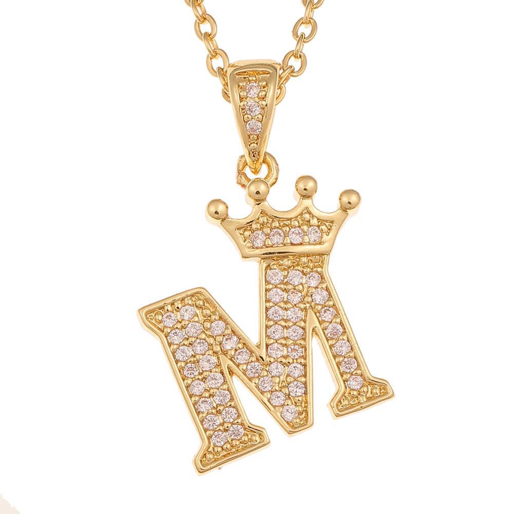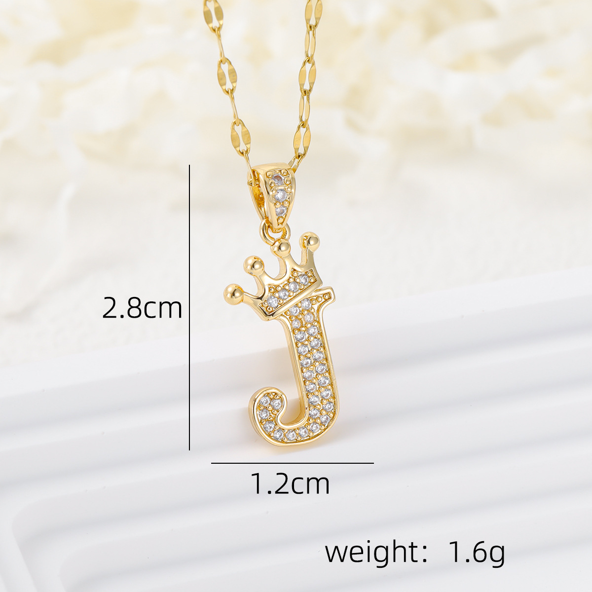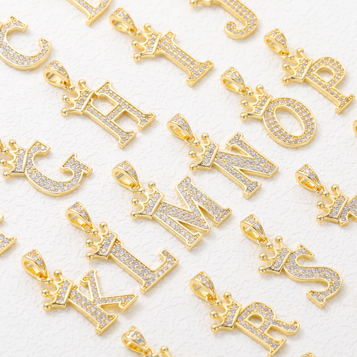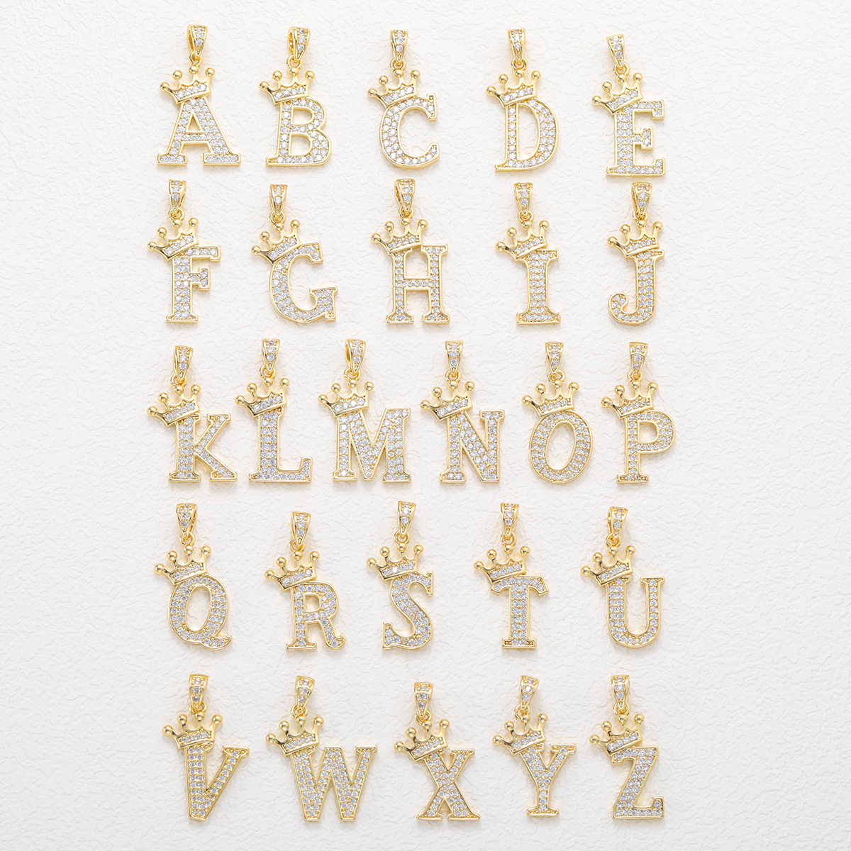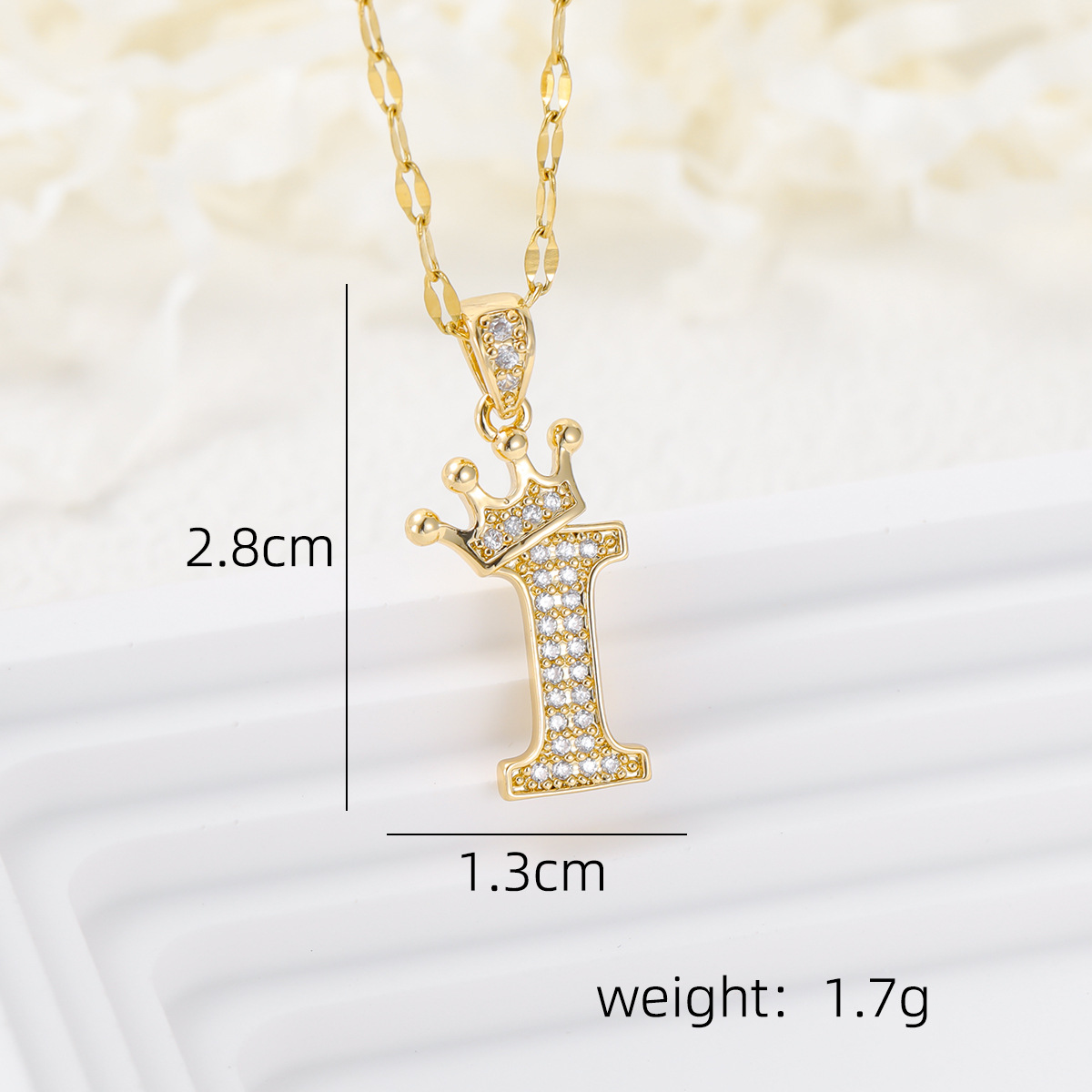 饰品亚马逊单层皇冠26英文字母吊坠项链饰品配饰铜镶锆石锁骨链