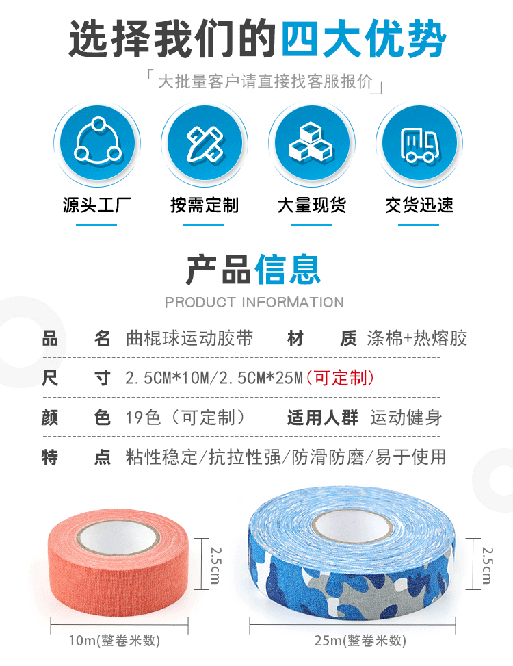 厂家批发 曲棍球冰球胶带 耐磨防滑球杆手柄胶带 运动胶带