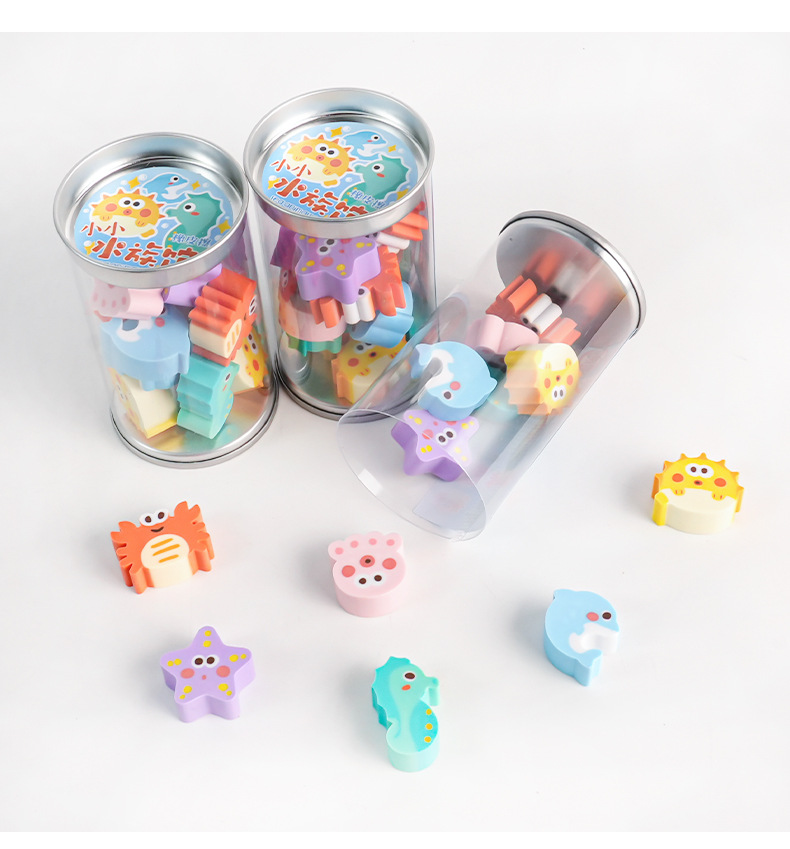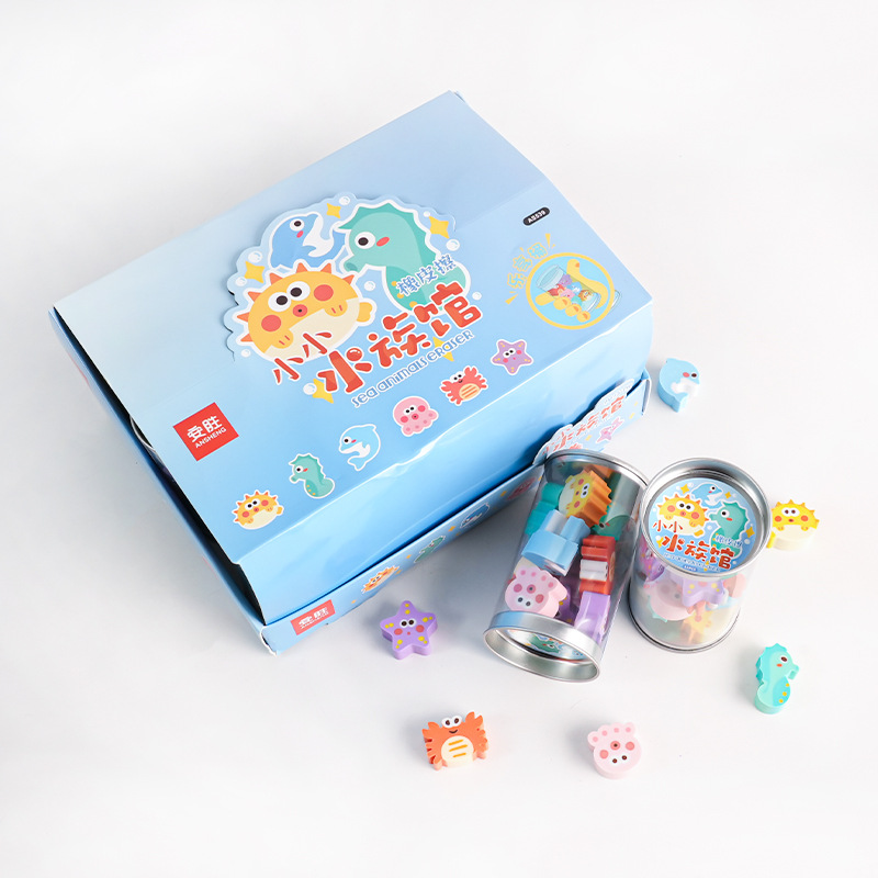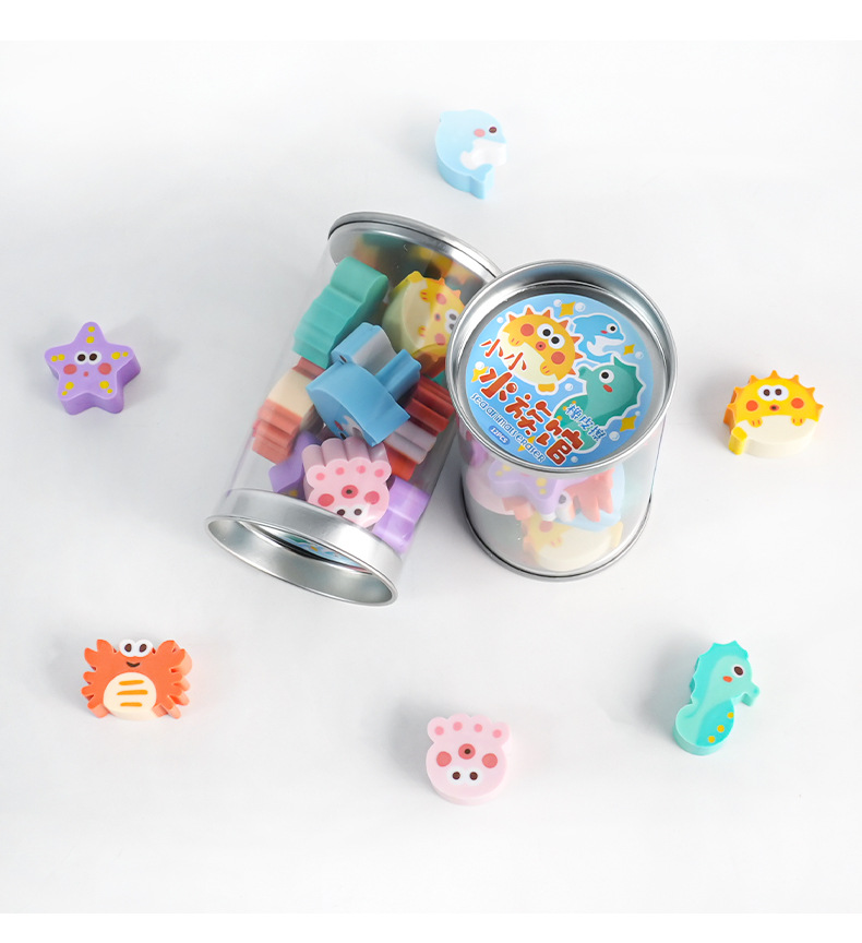水族馆创意桶装系列橡皮擦学生礼品少屑迷你可爱动物造型厂家直销