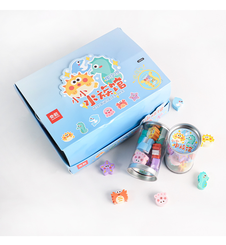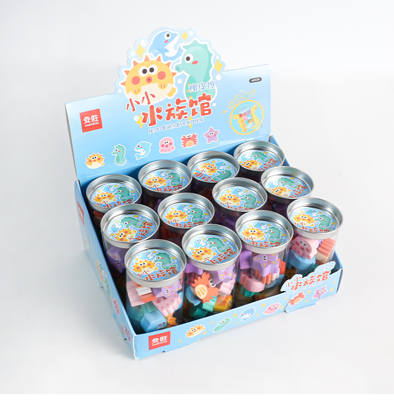 品名:水族馆橡皮擦 12/桶 24/中盒 毛重:26.1kg 箱规:45*40*35.5cm