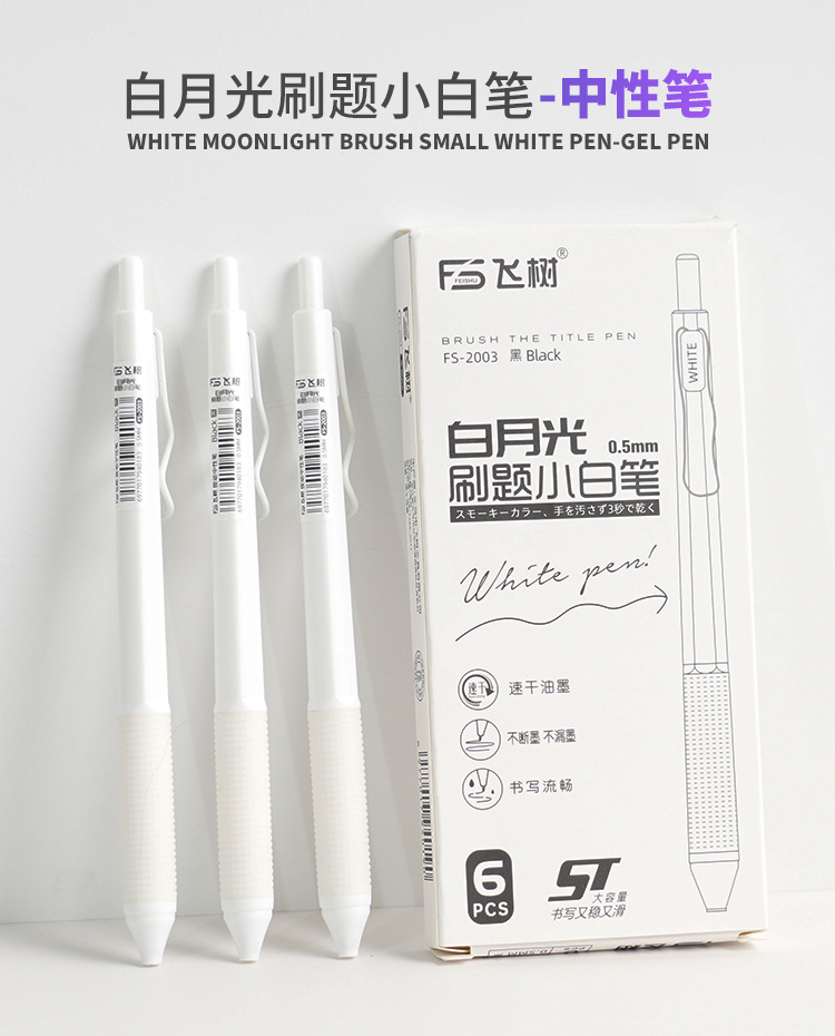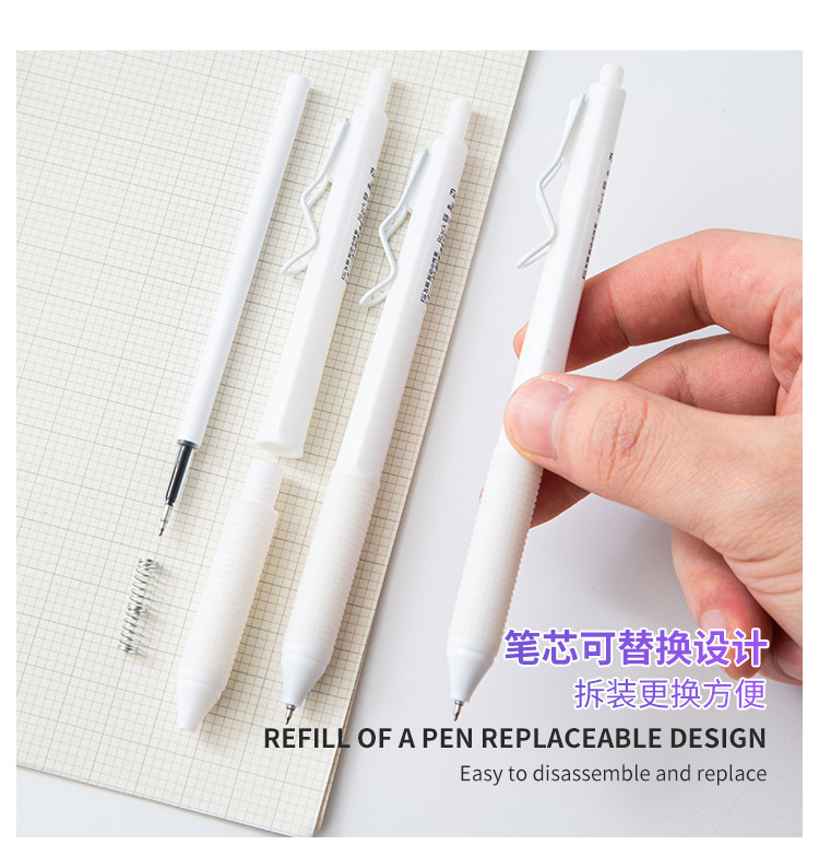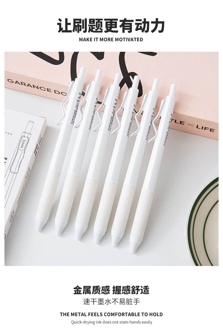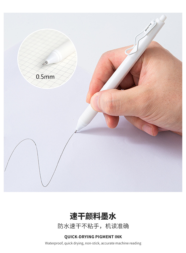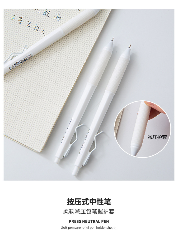 高颜值ins文具白月光色中性笔高颜值速干按动笔0.5mm刷题中性笔