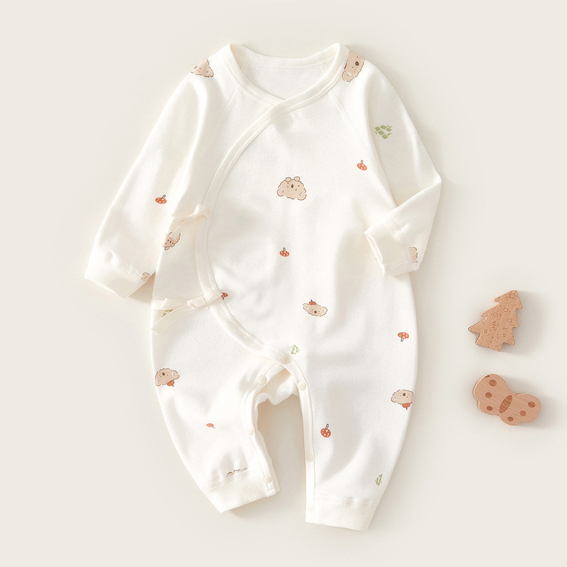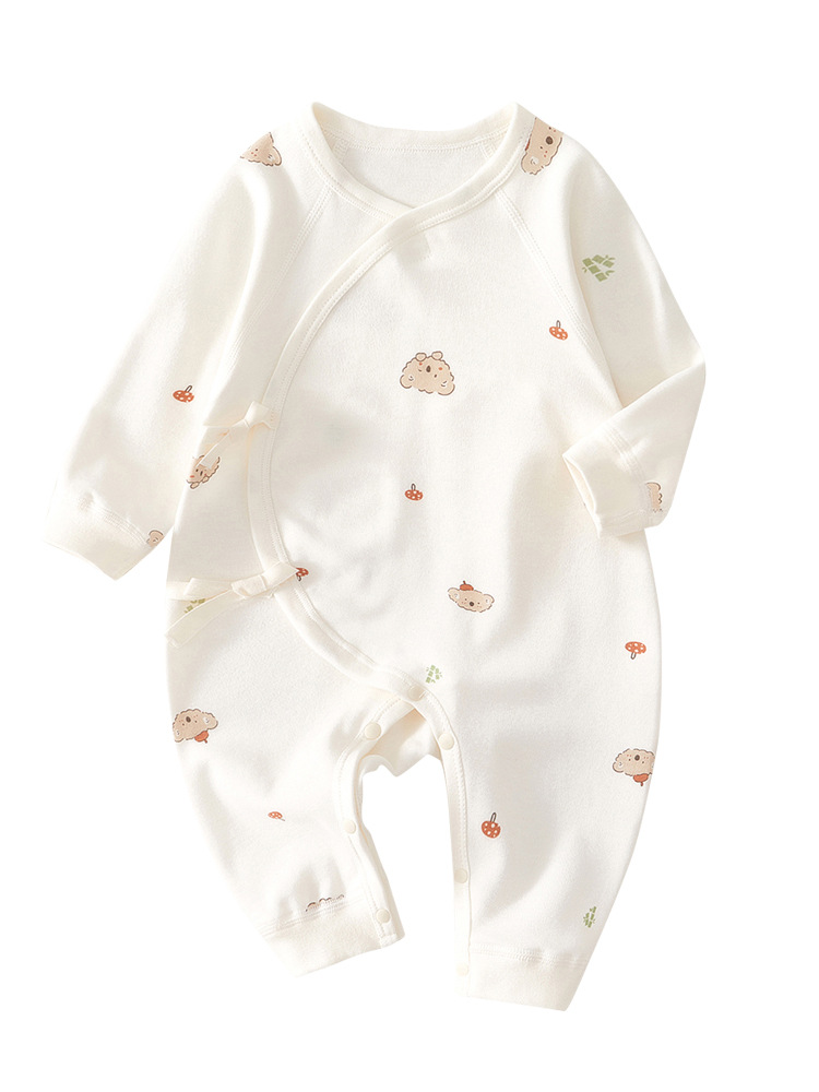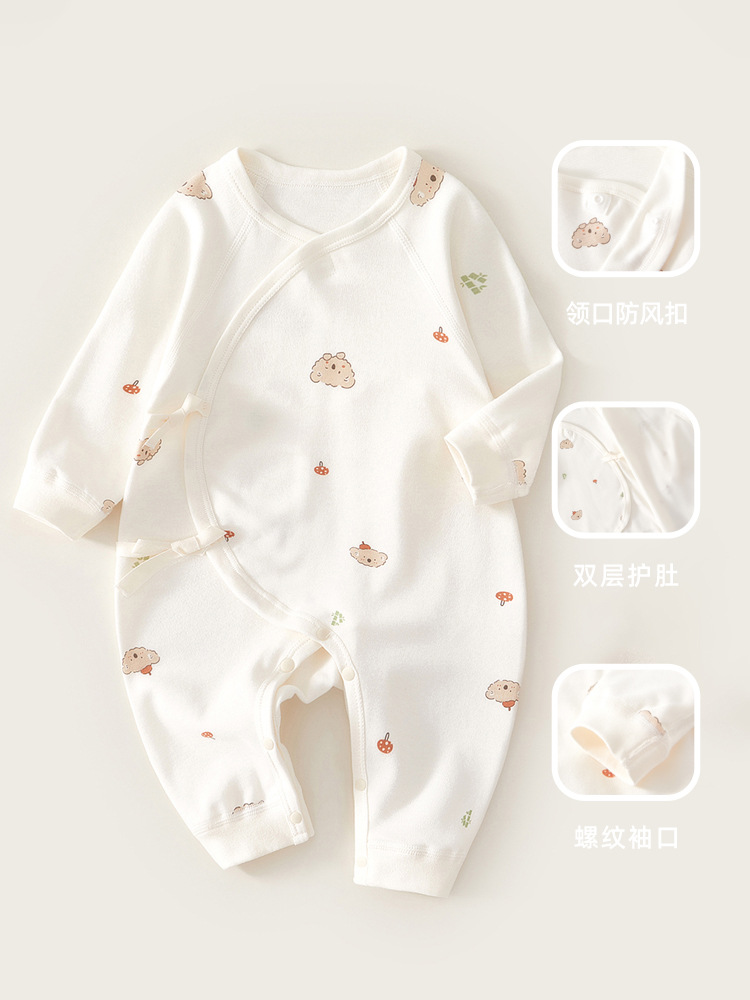 新生儿衣服纯棉连体衣春秋女宝贴身哈衣初生婴儿和尚服内衣蝴蝶衣