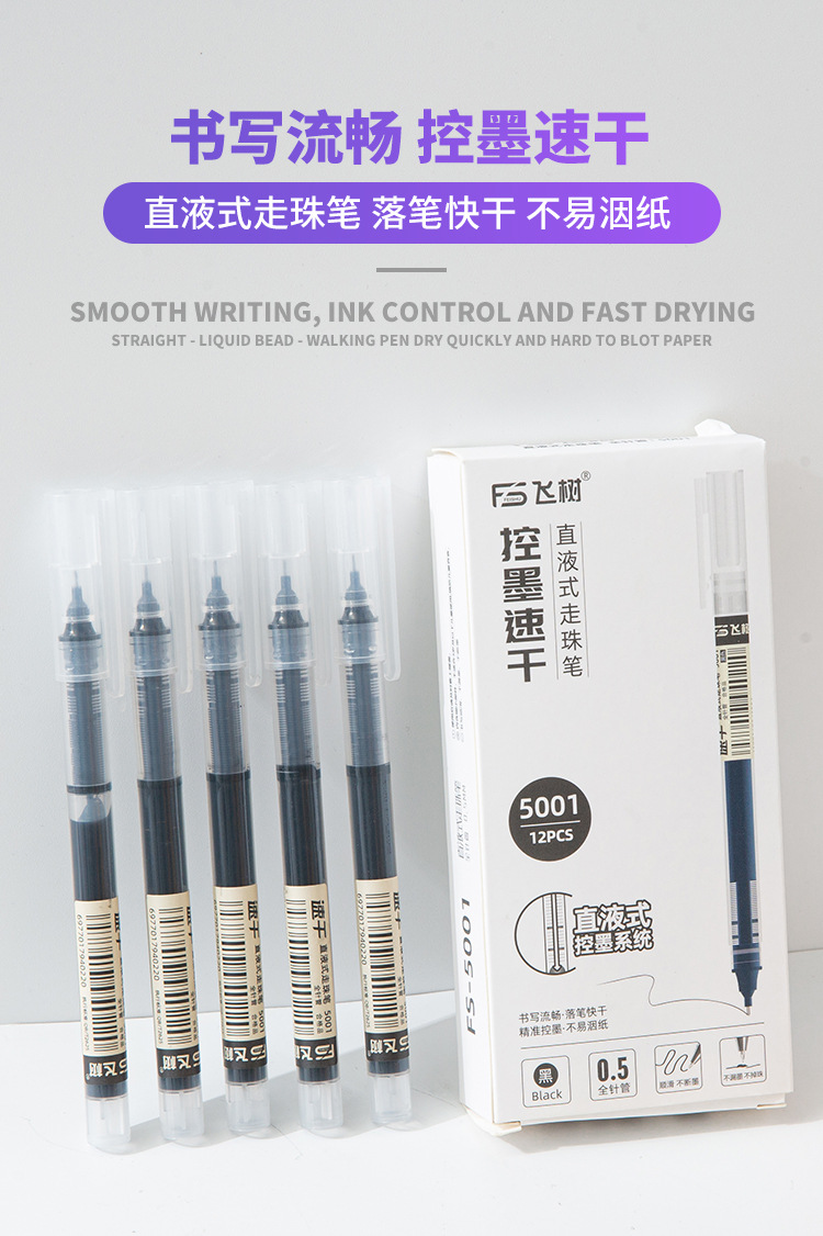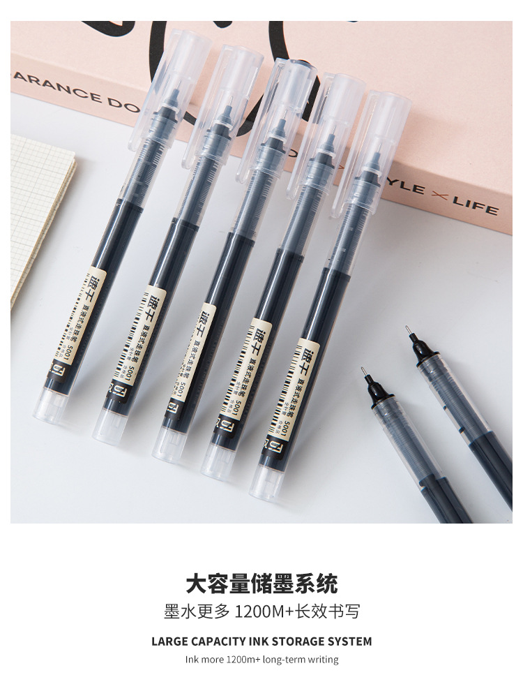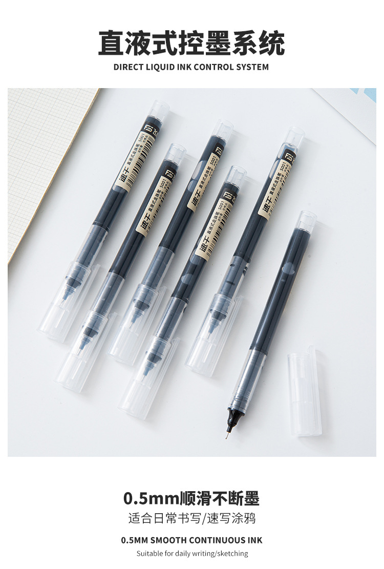 直液式走珠中性笔速干大容量学生中性笔0.5mm考试碳素水性笔批发