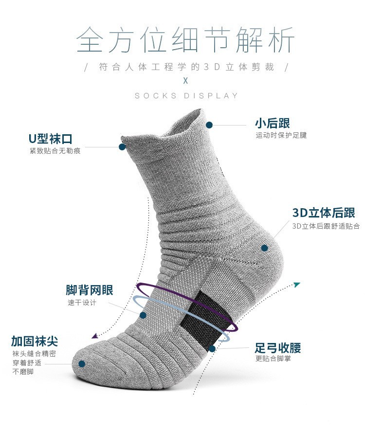 篮球袜子男加厚毛巾底毛圈袜精英袜中长筒高帮跑步户外袜运动袜子