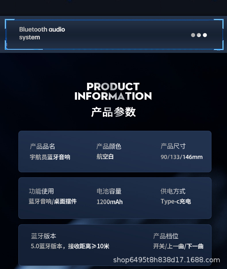 蓝牙音响新款宇航员无线U盘音箱氛围感高颜值usb充电音质跨境礼品