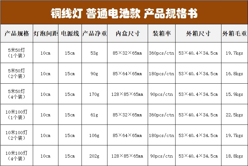 | two 5 th long bright battery box 1 m 10 lights (without battery)(两节5号长亮电池盒1米10灯 (不含电池)) | USD $0.22 | 588508 piece available |