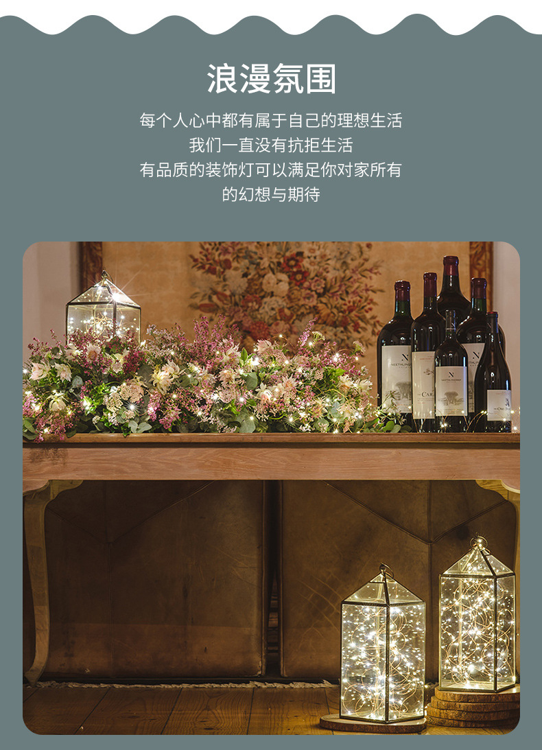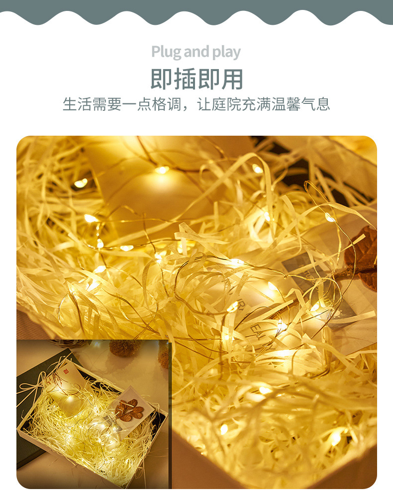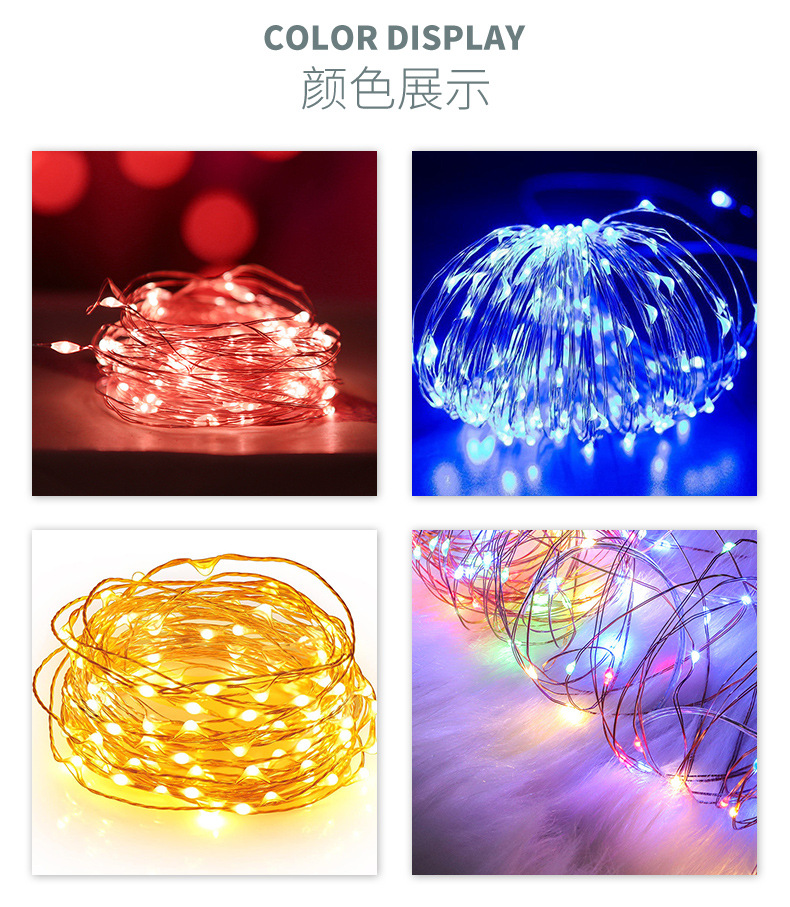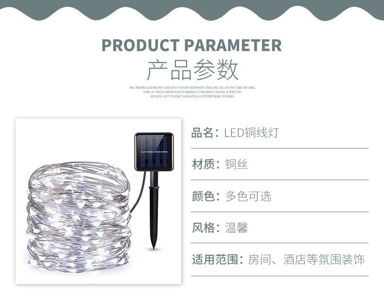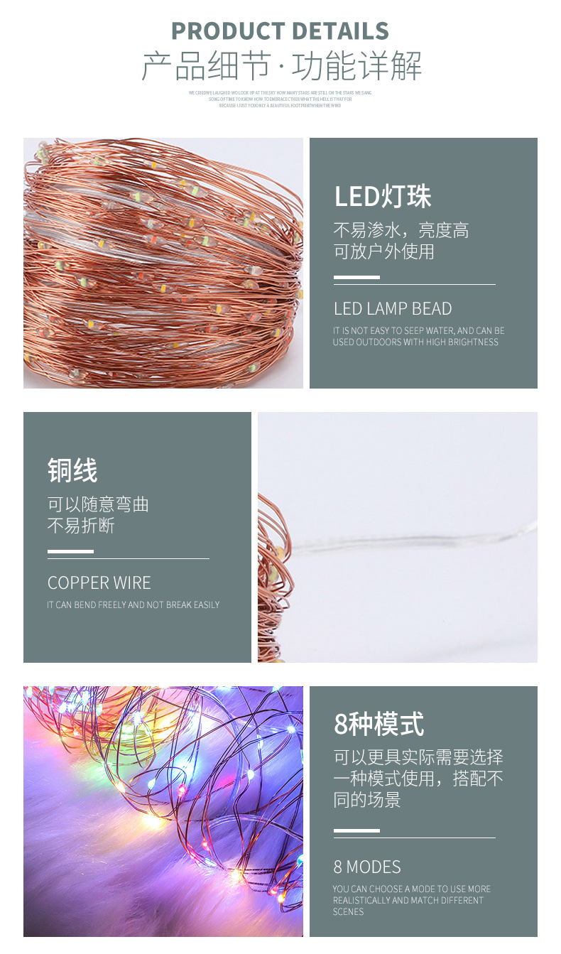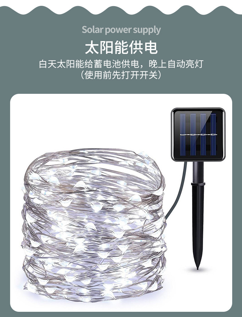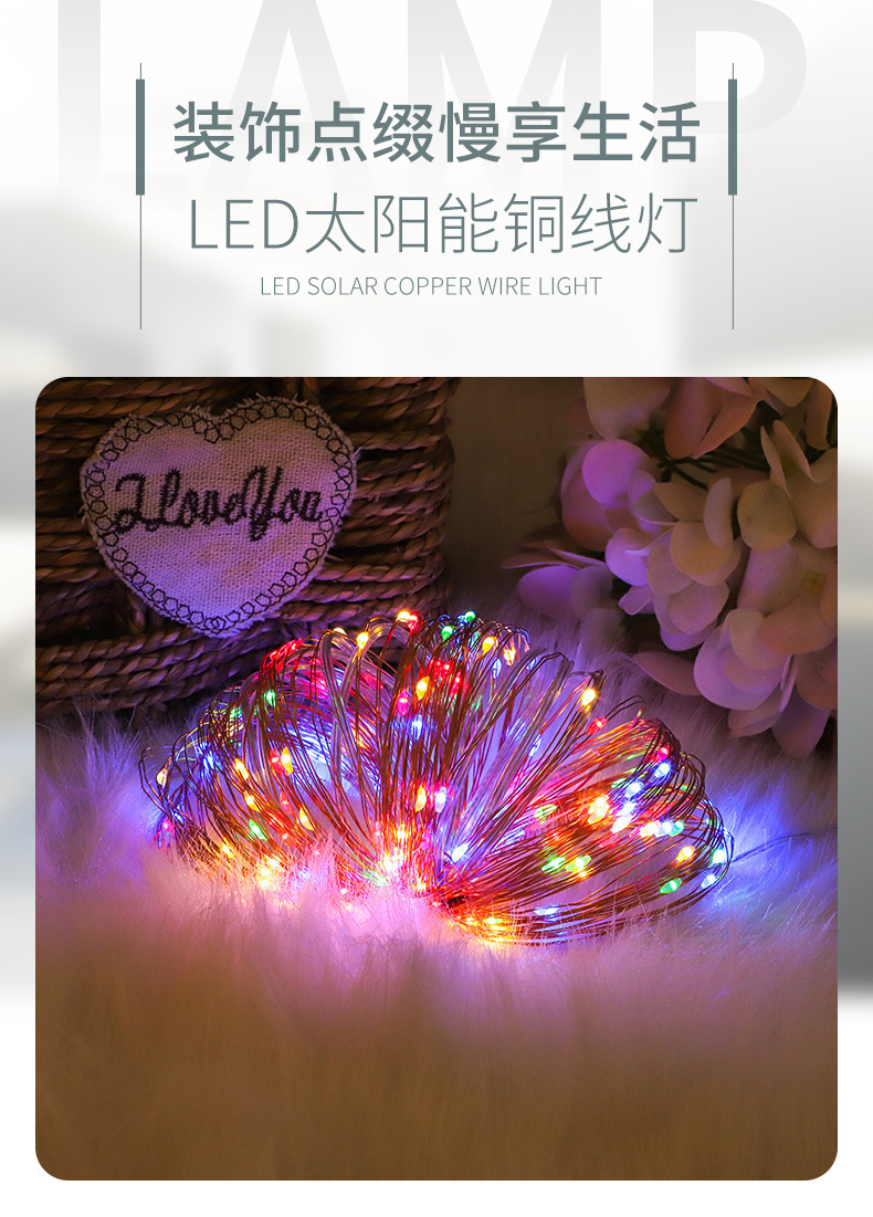 跨境LED太阳能铜线灯 彩灯装饰氛围灯串户外防水铜丝灯闪灯串灯