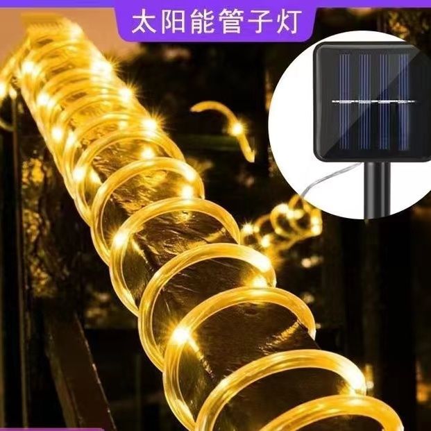 跨境LED灯串太阳能管子灯户外防水庭院装饰灯PVC节日氛围户外树灯