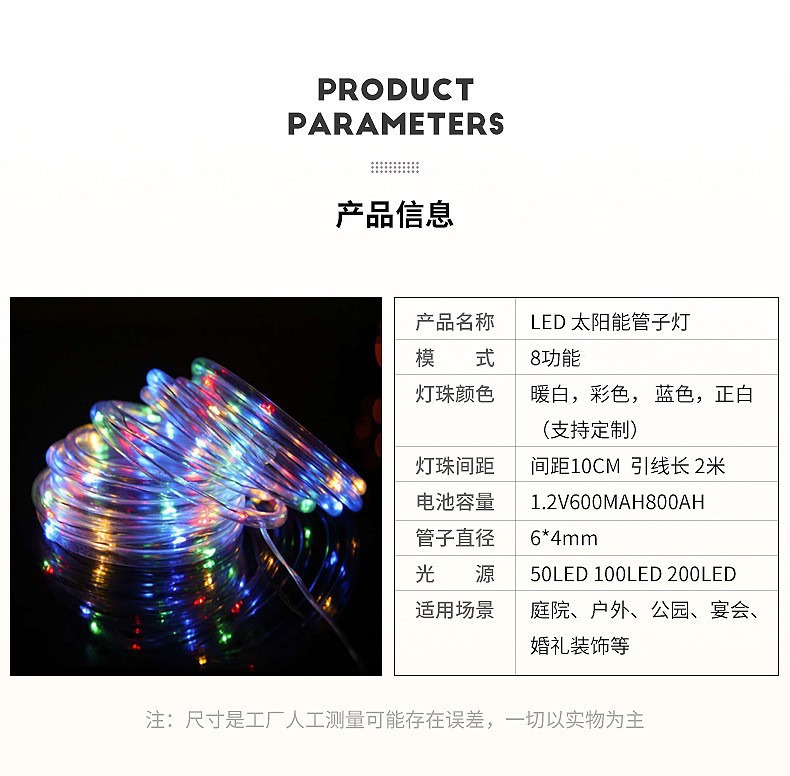 | 7 meters 50 lights 8 functions ordinary solar energy(7米50灯8功能普通太阳能) | USD $3.09 | 99899 set available |