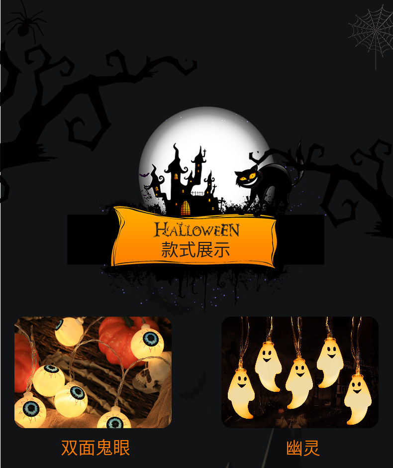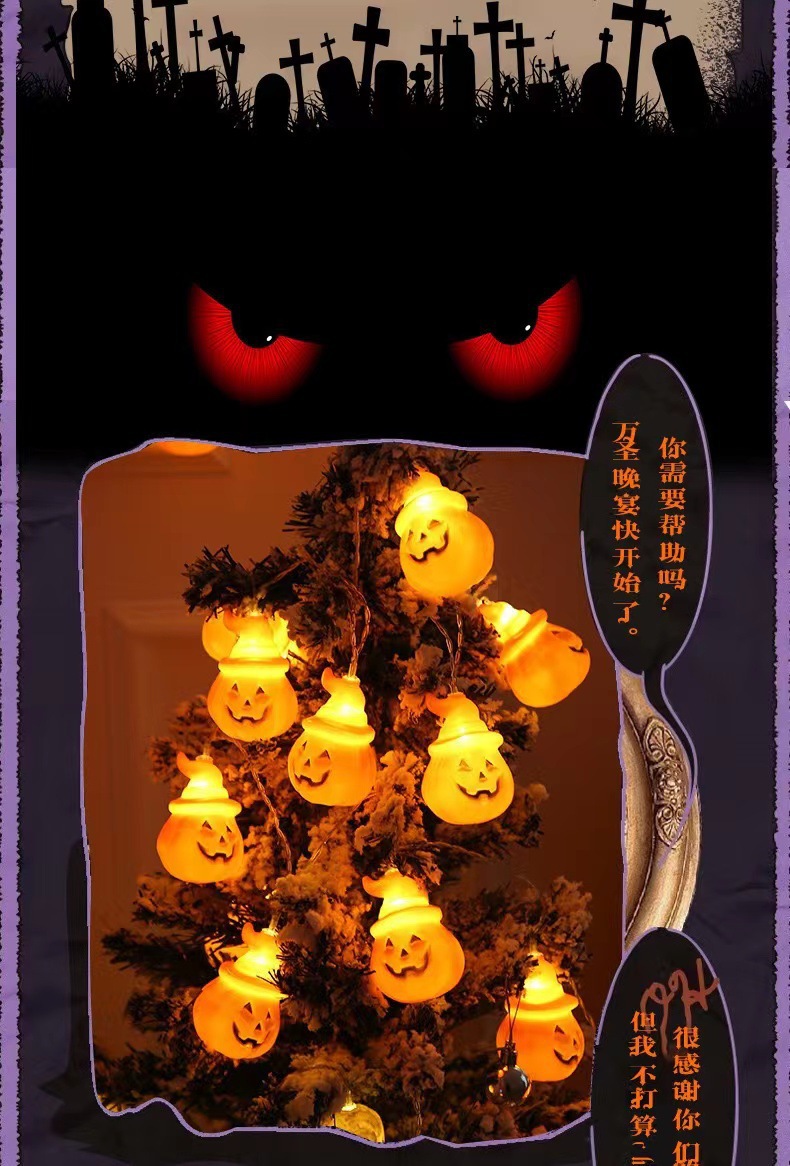 2024跨境新款太阳能万圣节带帽南瓜灯串led灯串节日鬼节装饰彩灯