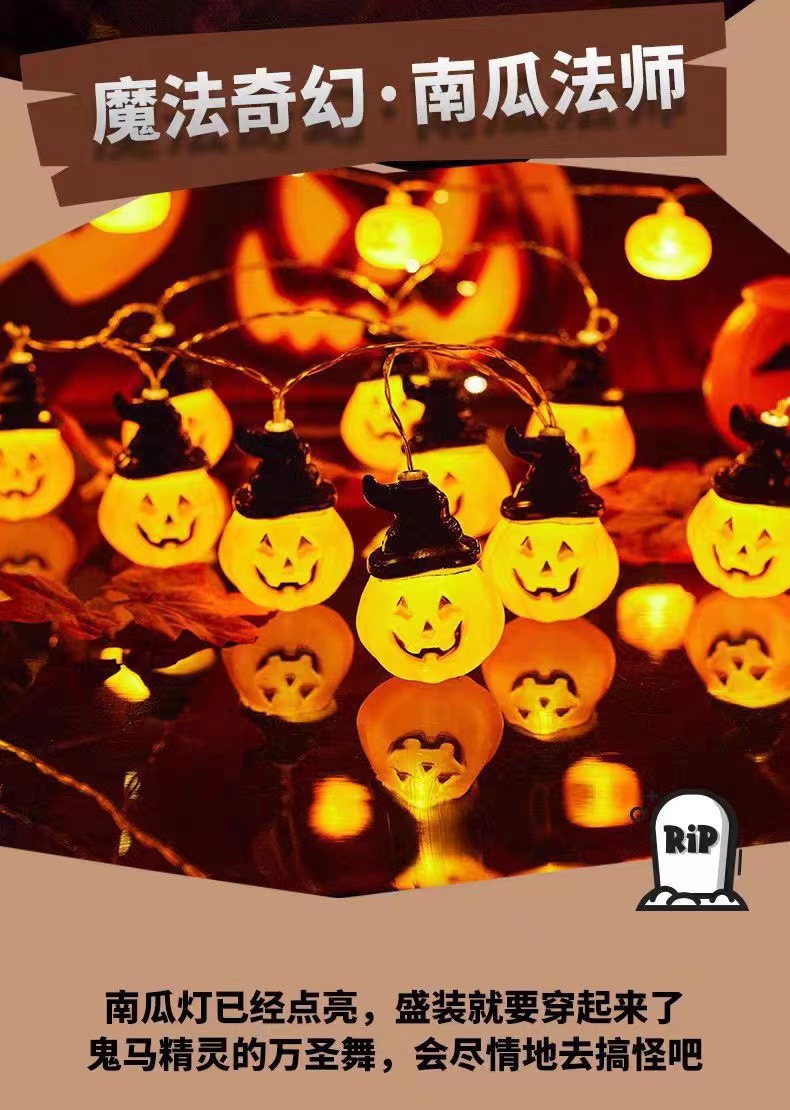 跨境款LED万圣节南瓜幽灵鬼眼骷髅摆拍装饰氛围小彩灯