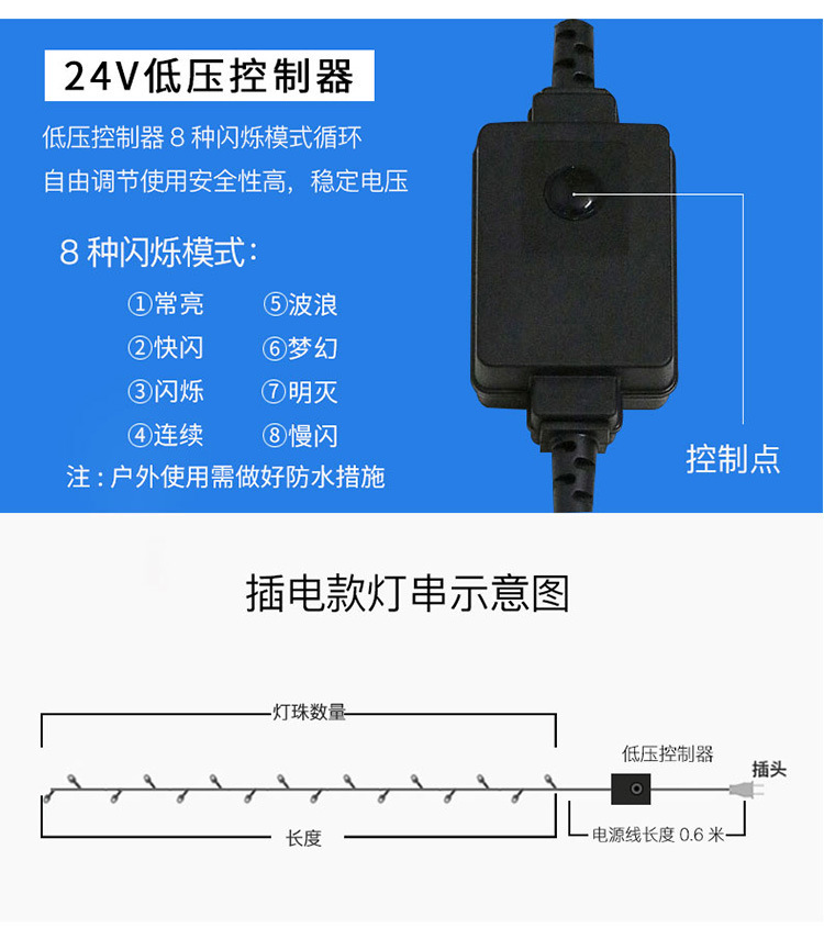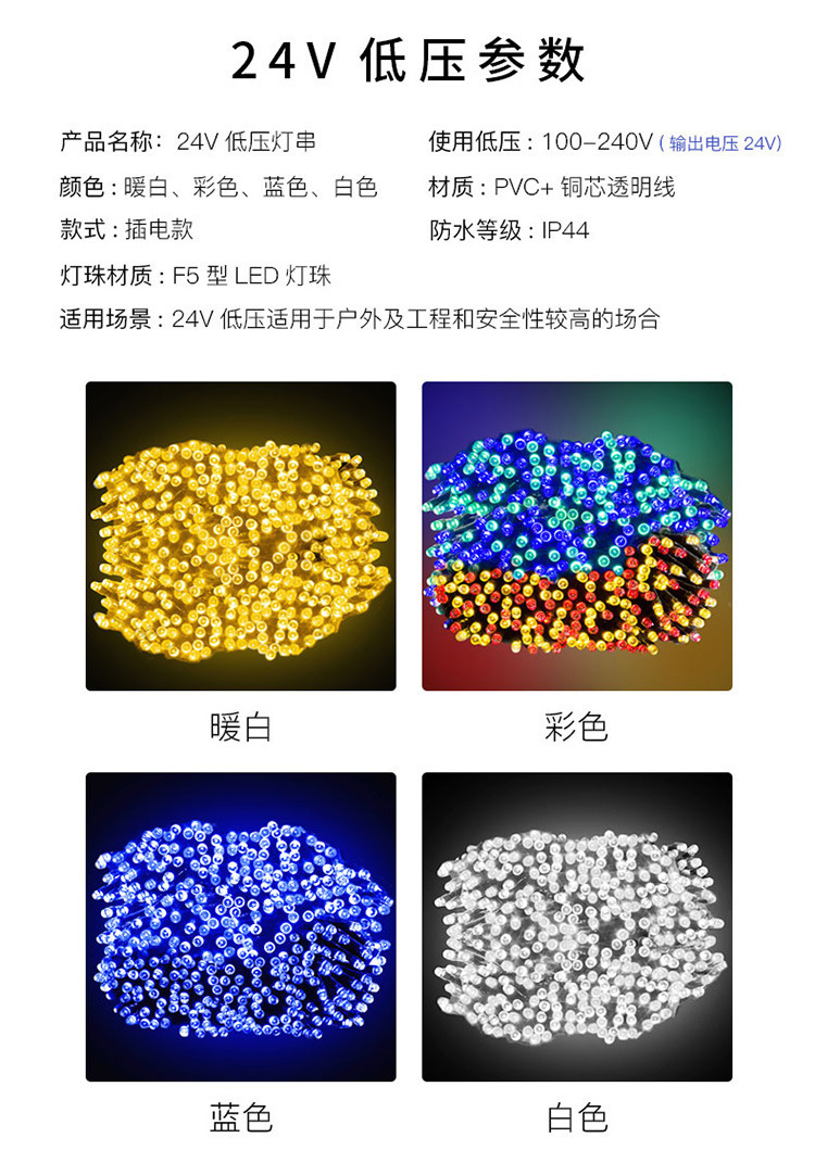 | [24v low voltage model] 10 m 100 lights(【24v低压款】10米100灯) | USD $2.81 | 8000 set available |