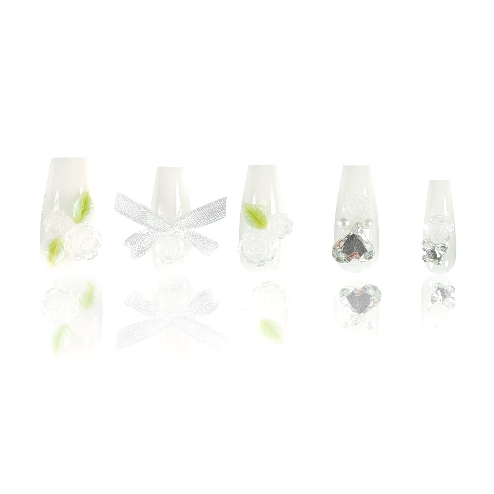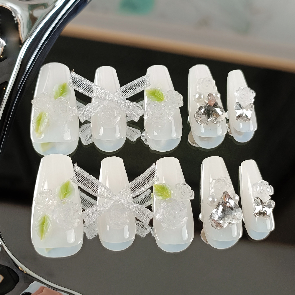 10片分码山茶花美甲 爱心镶钻高级感指甲贴片 纯手工蝴蝶结穿戴甲