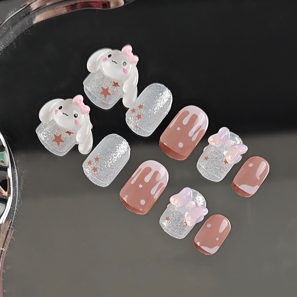 小红书爆款大耳狗美甲甲片 爆闪星星可爱指甲贴片 蝴蝶显白穿戴甲