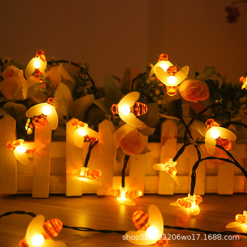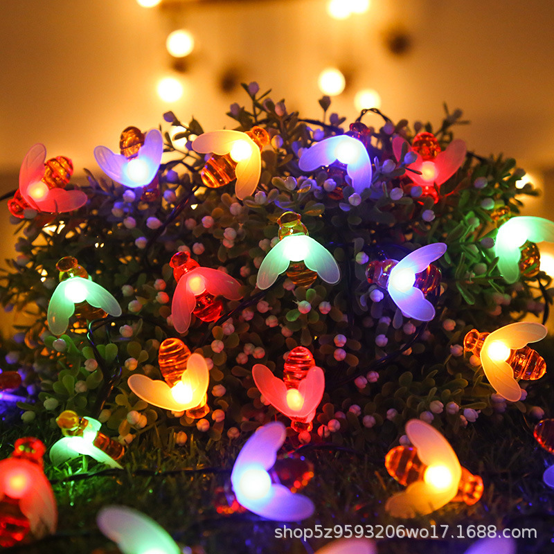 跨境LED小蜜蜂太阳能灯串节日装饰室外彩灯电池USB款暖色温馨风