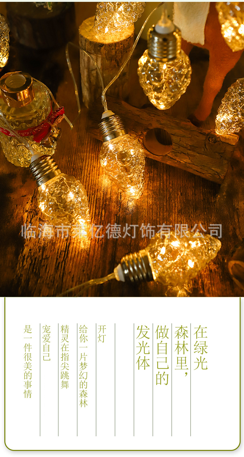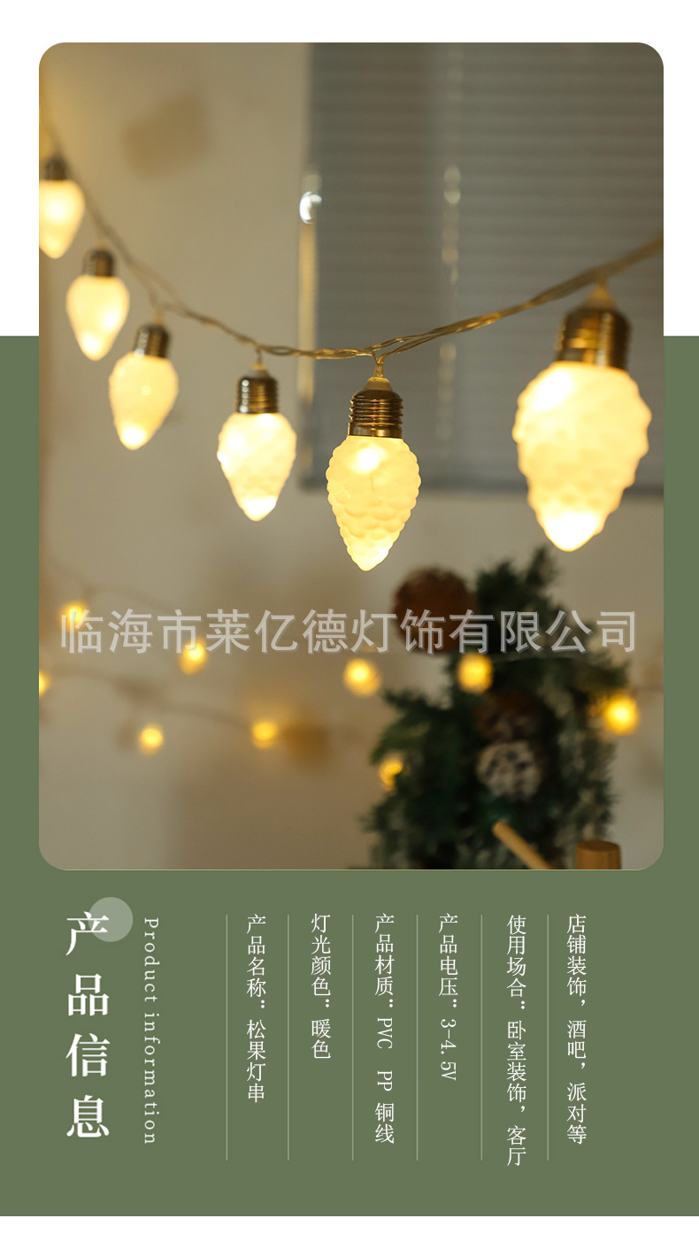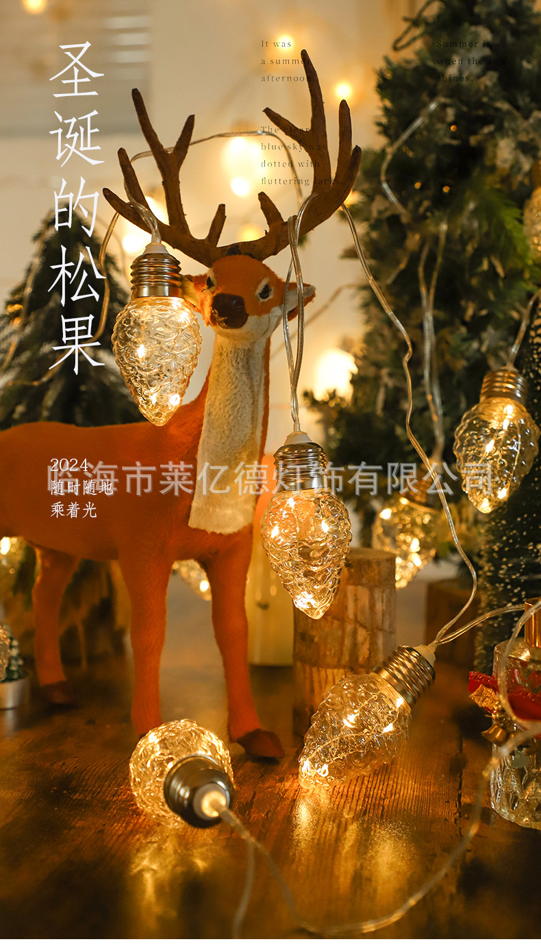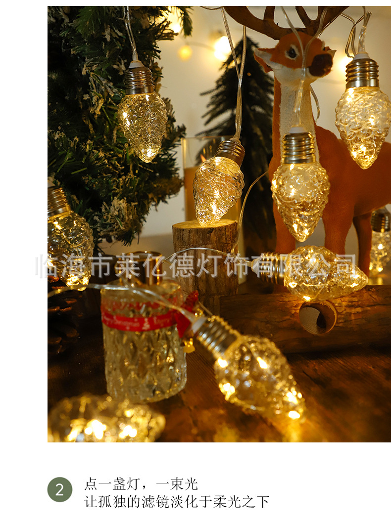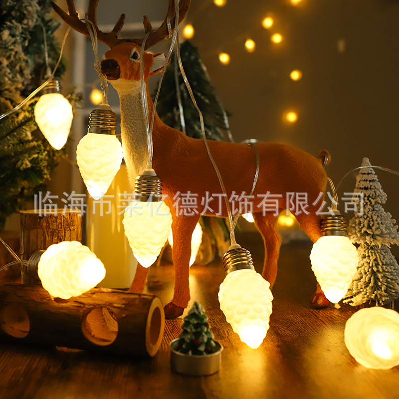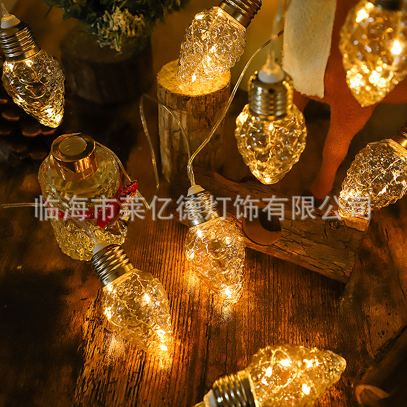 跨境新品LED灯串仿真松果灯串透明白色圣诞节家居摆件壁炉挂件
