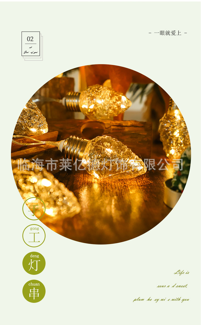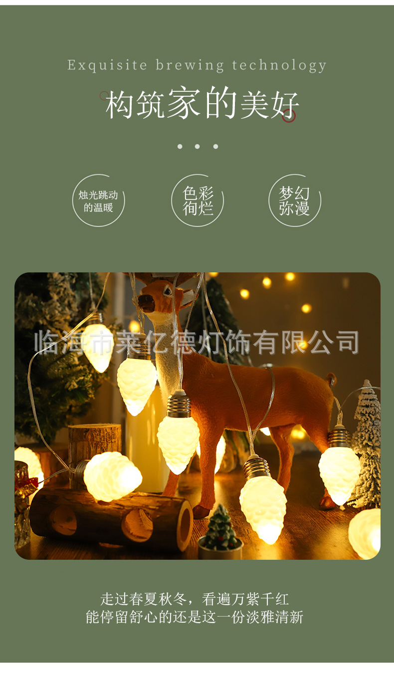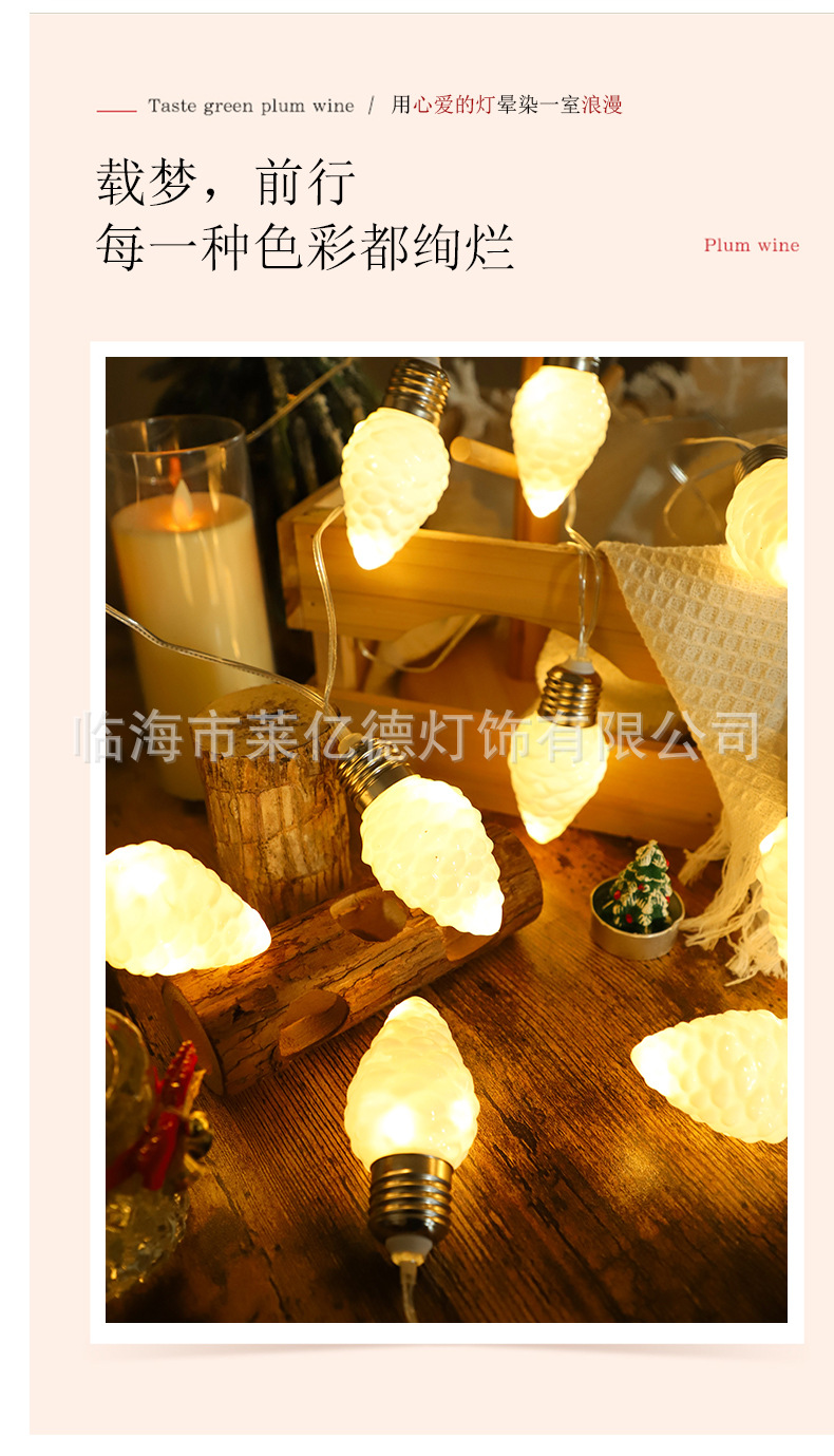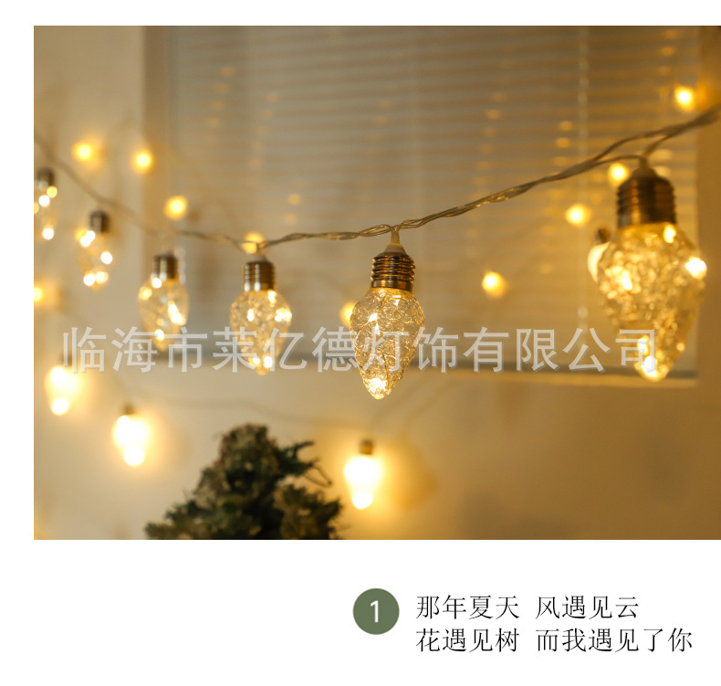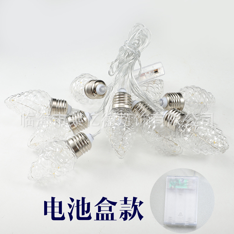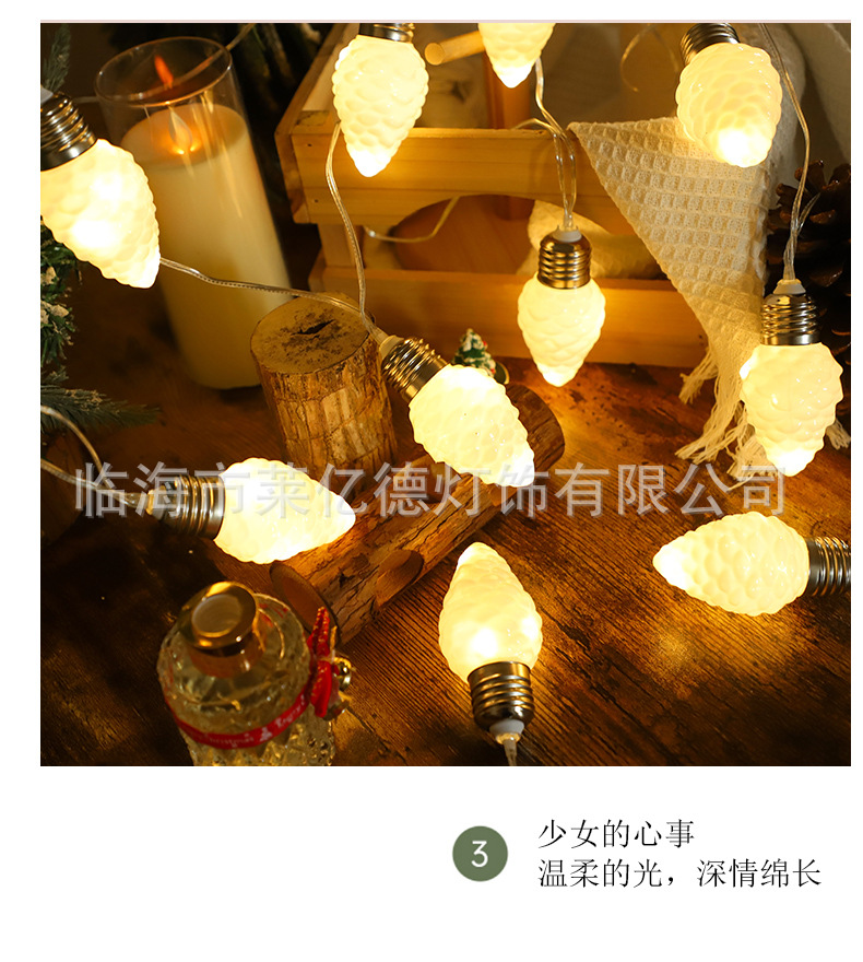 跨境新品LED灯串仿真松果灯串透明白色圣诞节家居摆件壁炉挂件