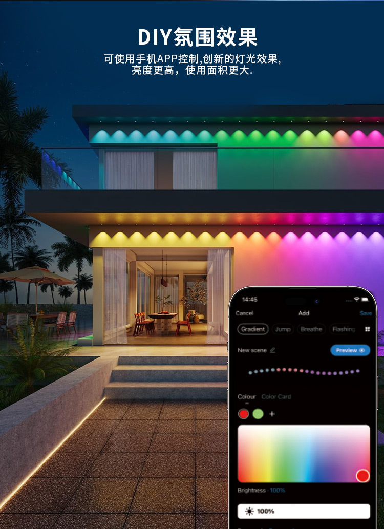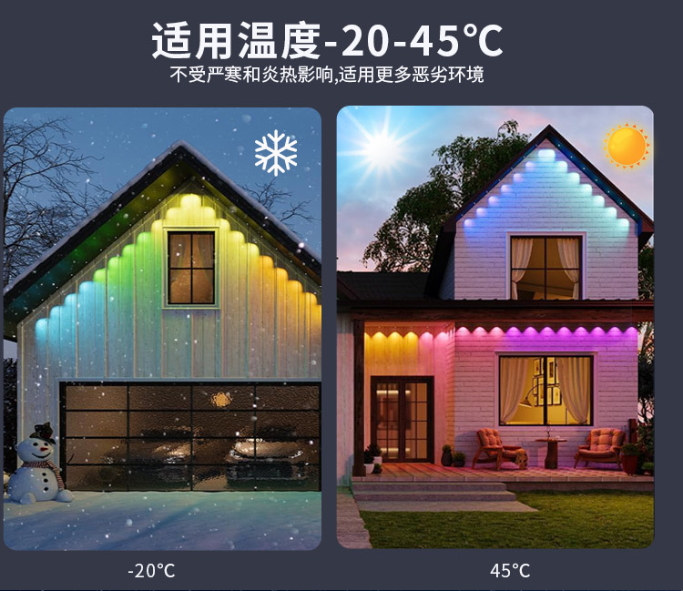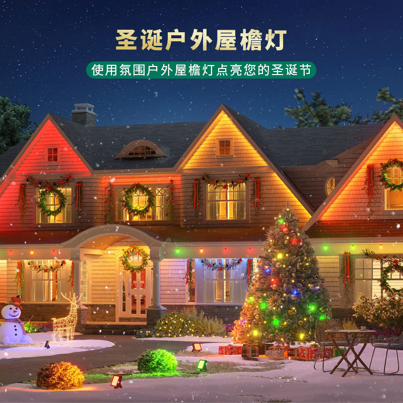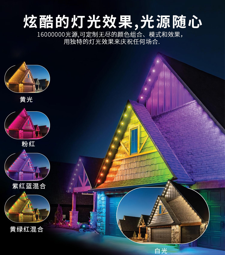 跨境led幻彩屋檐灯防水智能app氛围灯圣诞屋檐灯串庭院RGB户外灯