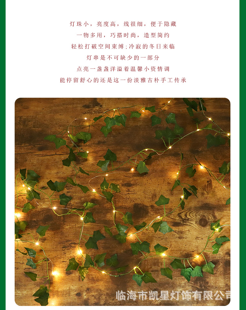 跨境爆款外贸枫叶藤条灯串led铜线灯圣诞装饰彩灯串灯 太阳能灯串