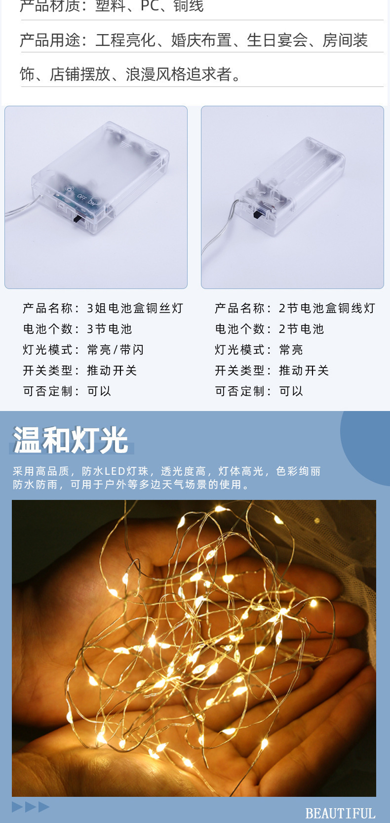 跨境LED铜线灯铜丝灯电池盒USB蛋糕礼盒装饰LED串灯圣诞灯装饰灯