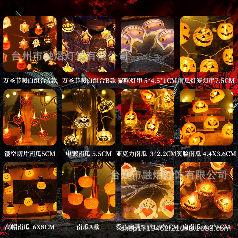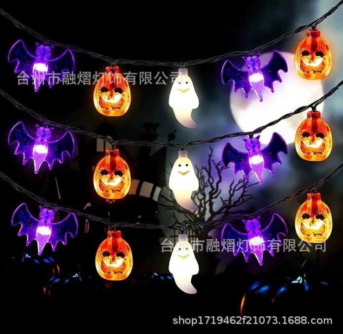 跨境万圣节灯串LED南瓜灯幽灵鬼眼球骷髅串灯鬼节派对装饰氛围灯