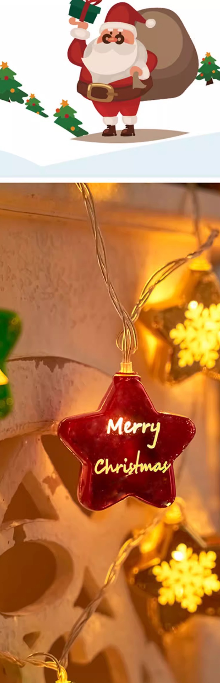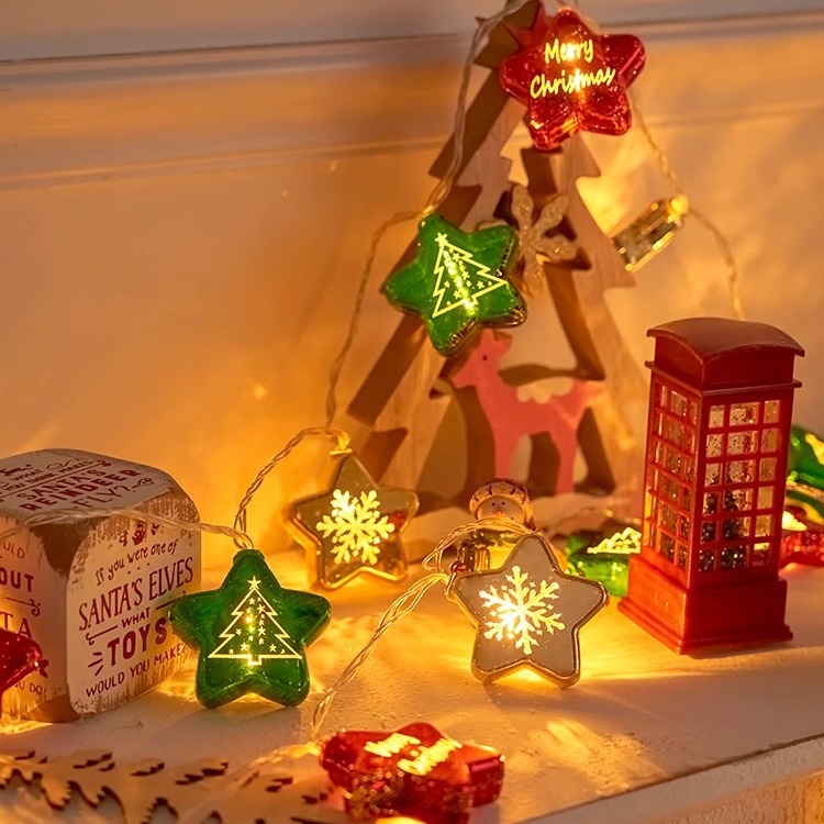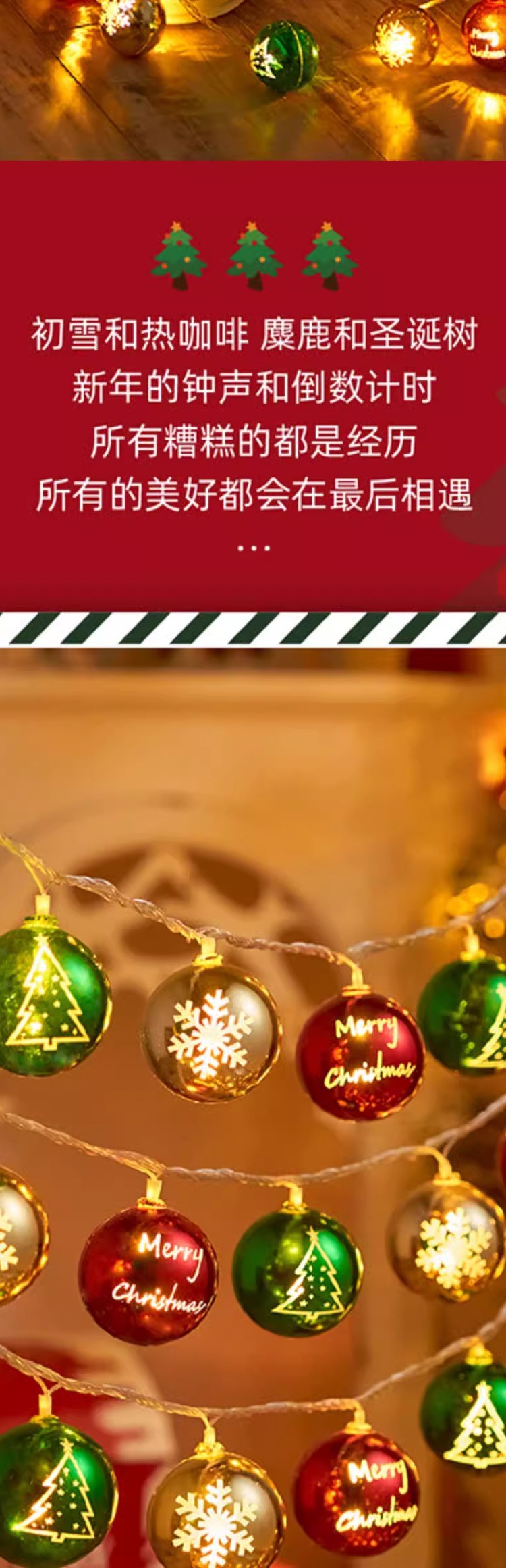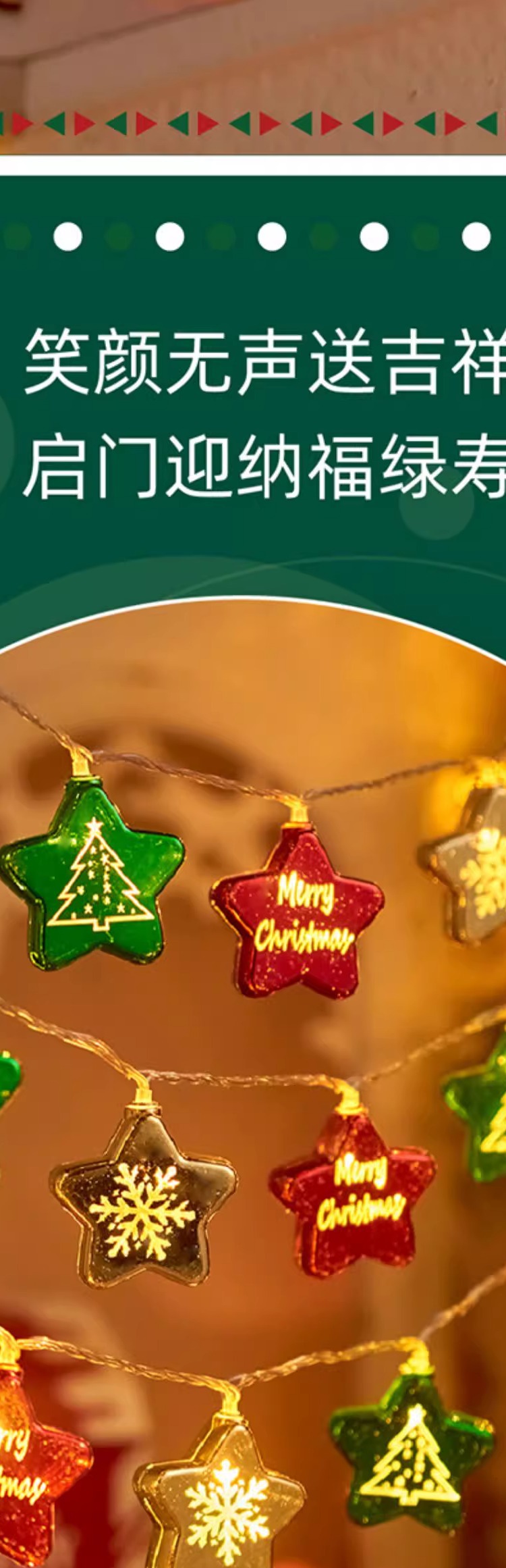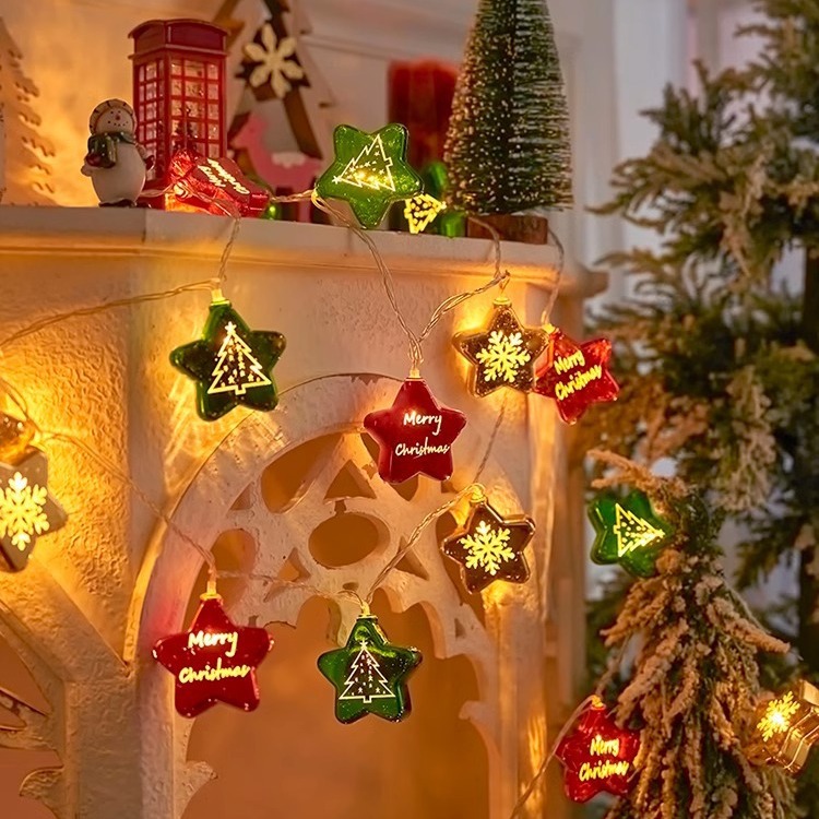 跨境LED灯串圣诞树装饰灯电镀圣诞球五角星天罗球氛围小彩灯挂件