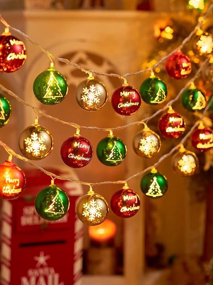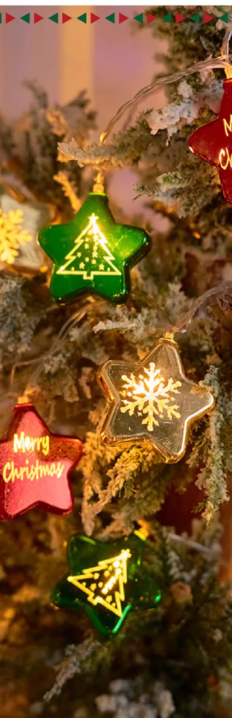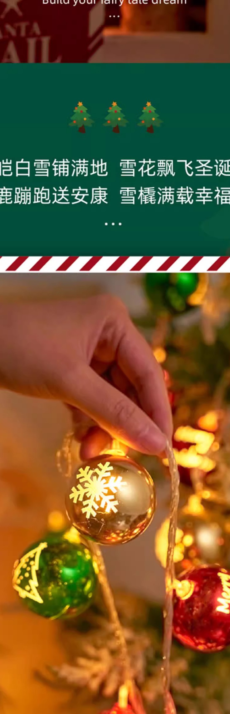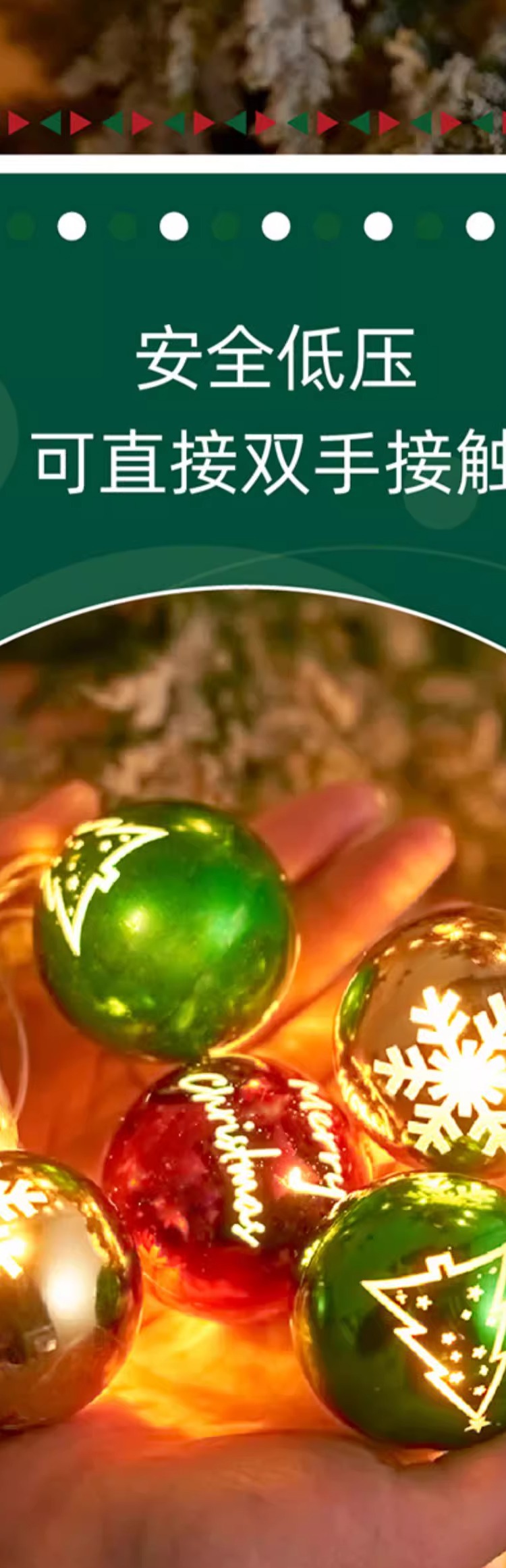 跨境LED灯串圣诞树装饰灯电镀圣诞球五角星天罗球氛围小彩灯挂件