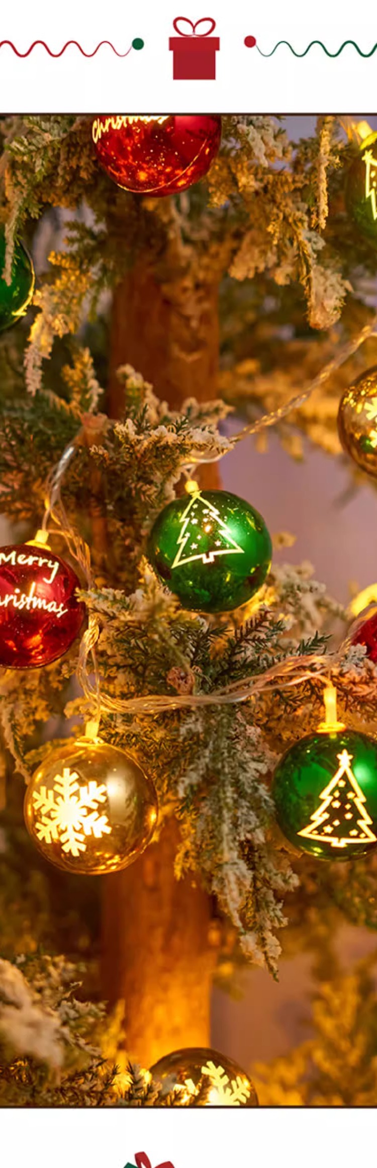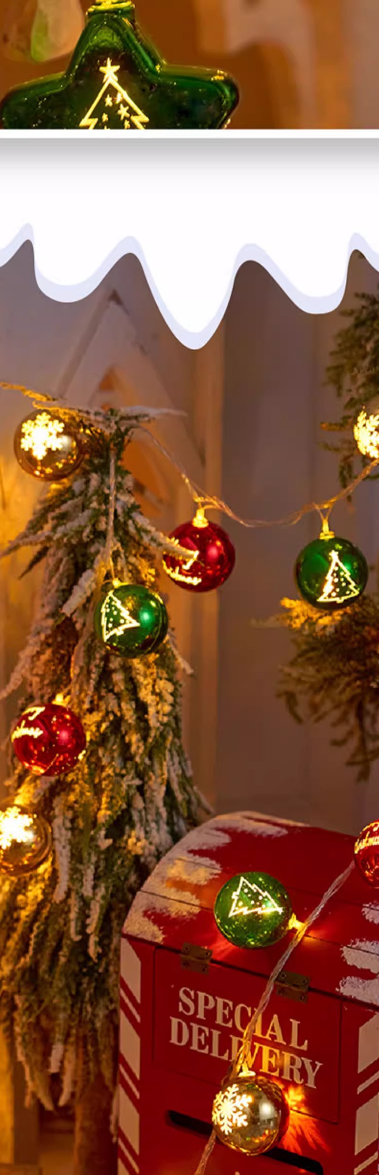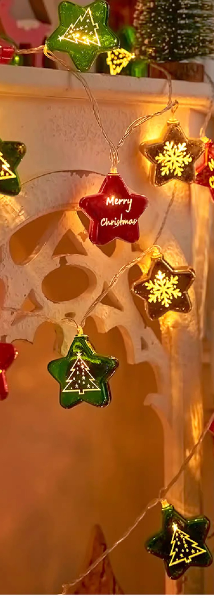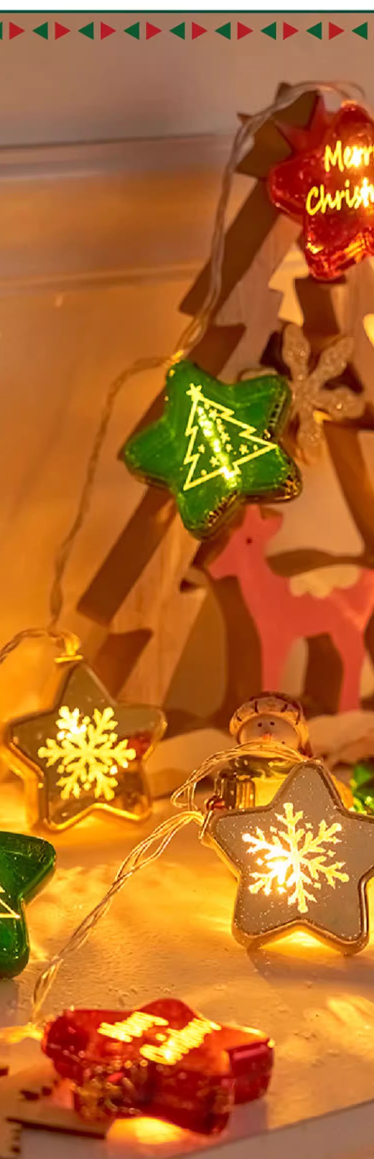 跨境LED灯串圣诞树装饰灯电镀圣诞球五角星天罗球氛围小彩灯挂件
