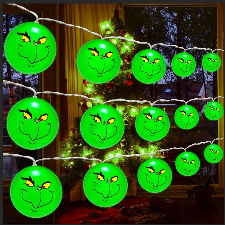 跨境新款格林奇grinch灯串万圣灯串led彩灯圣诞装饰灯 灯串批发