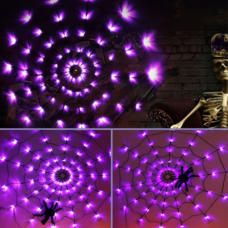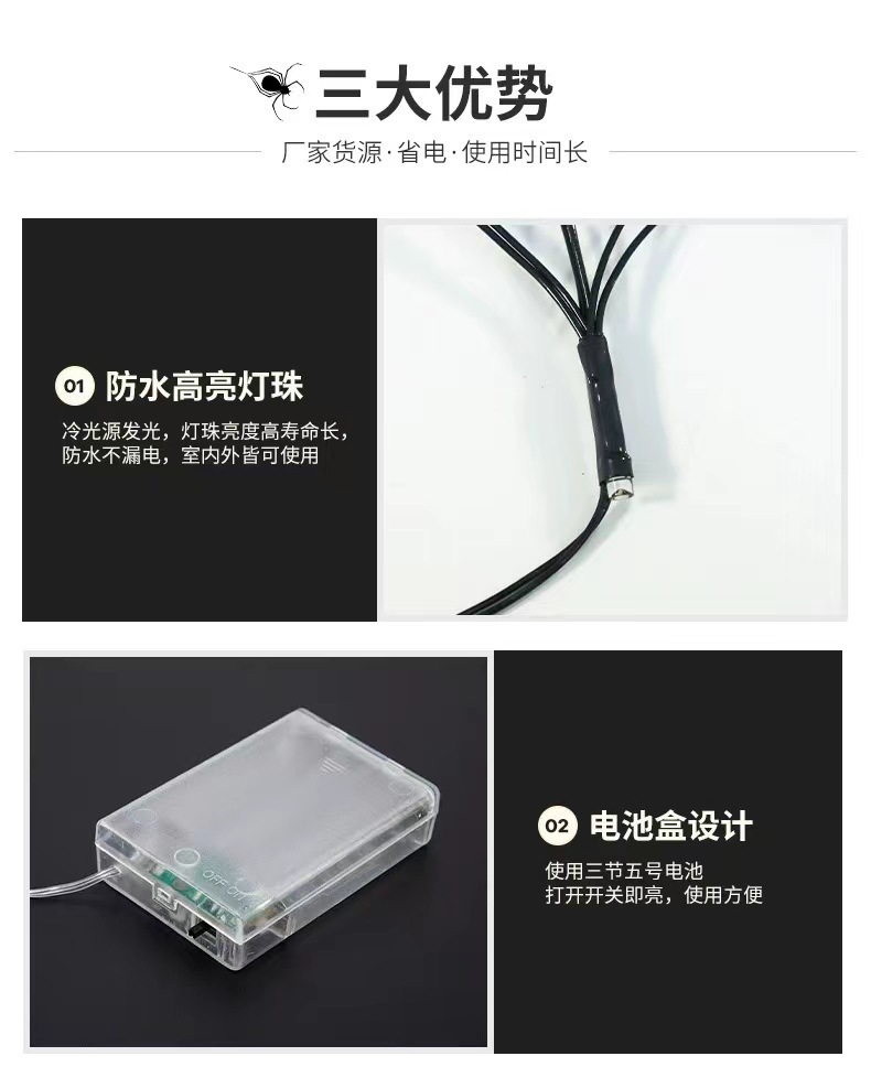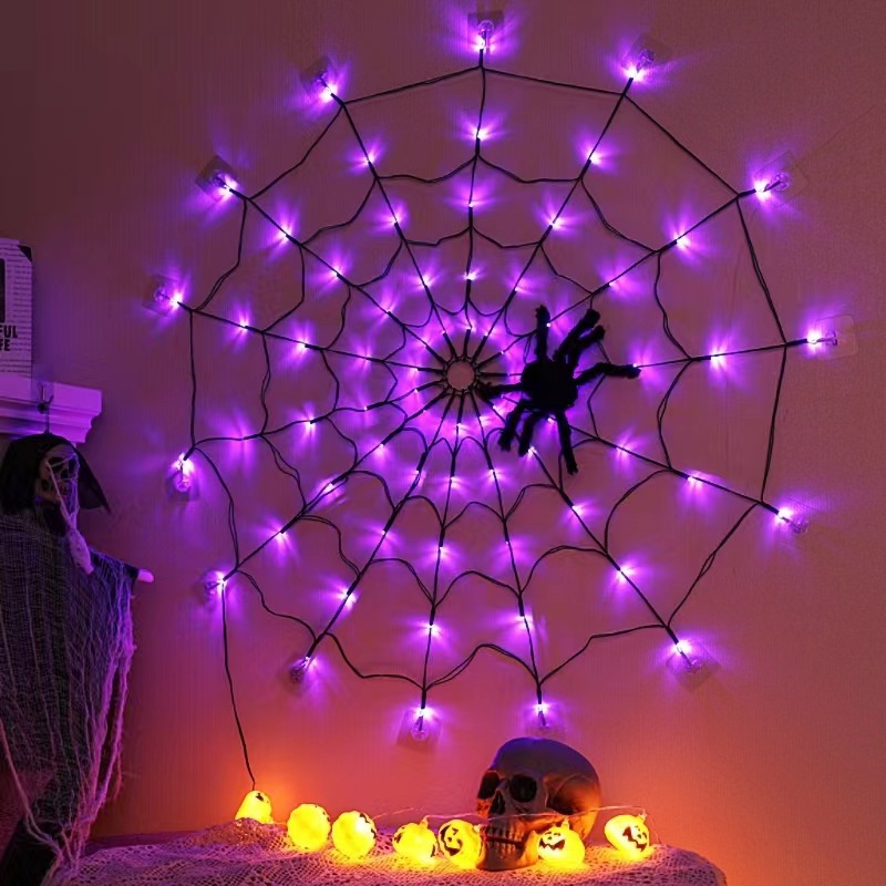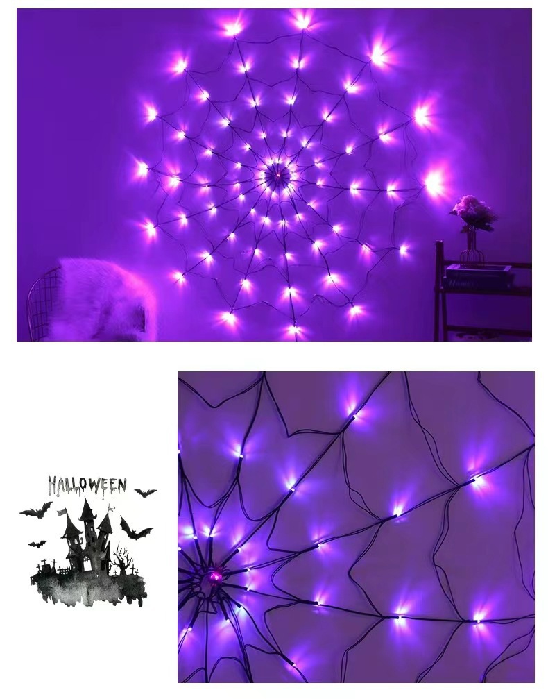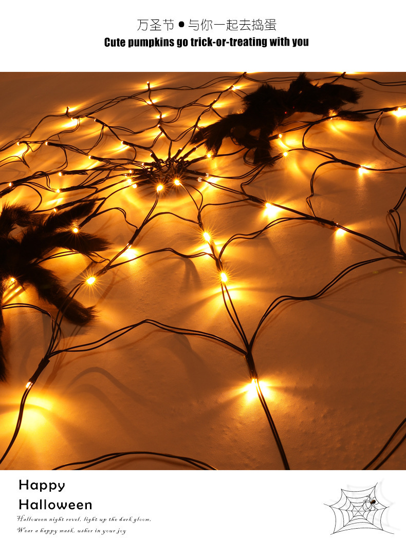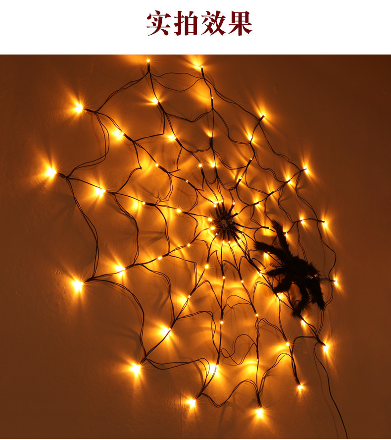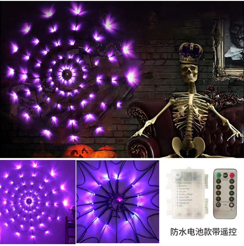 跨境热卖led万圣节灯串鬼节恐怖道具场景装饰氛围灯蜘蛛网灯彩灯