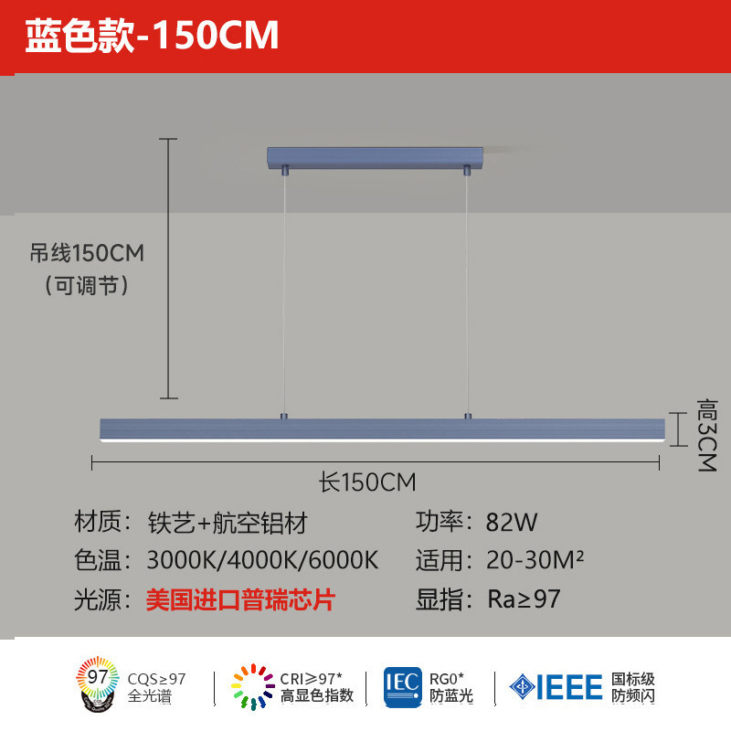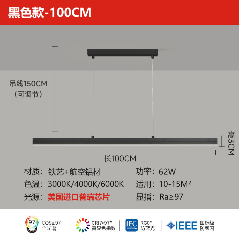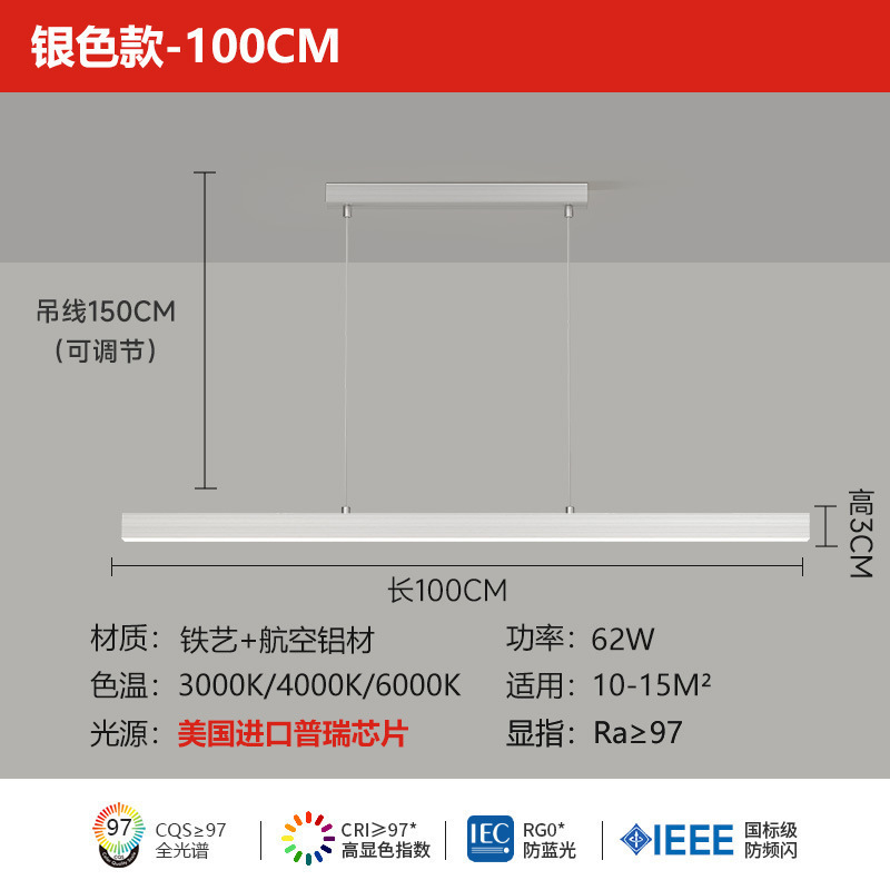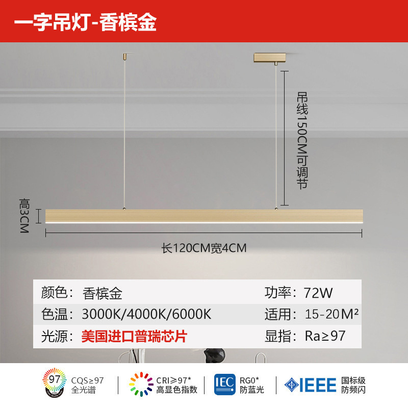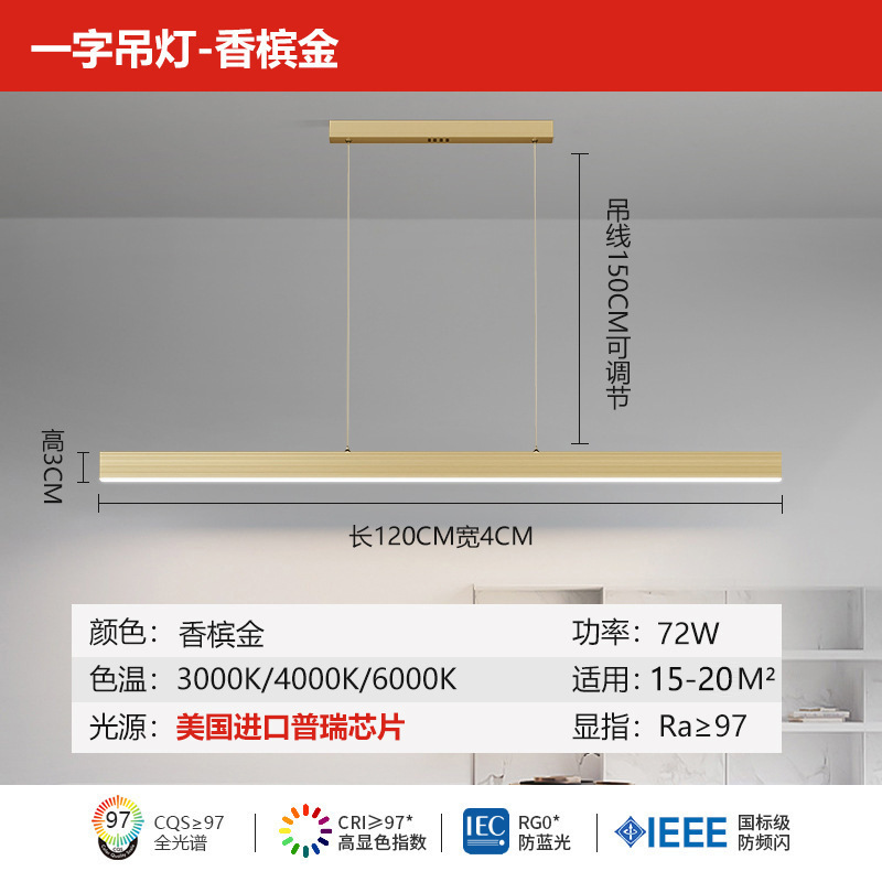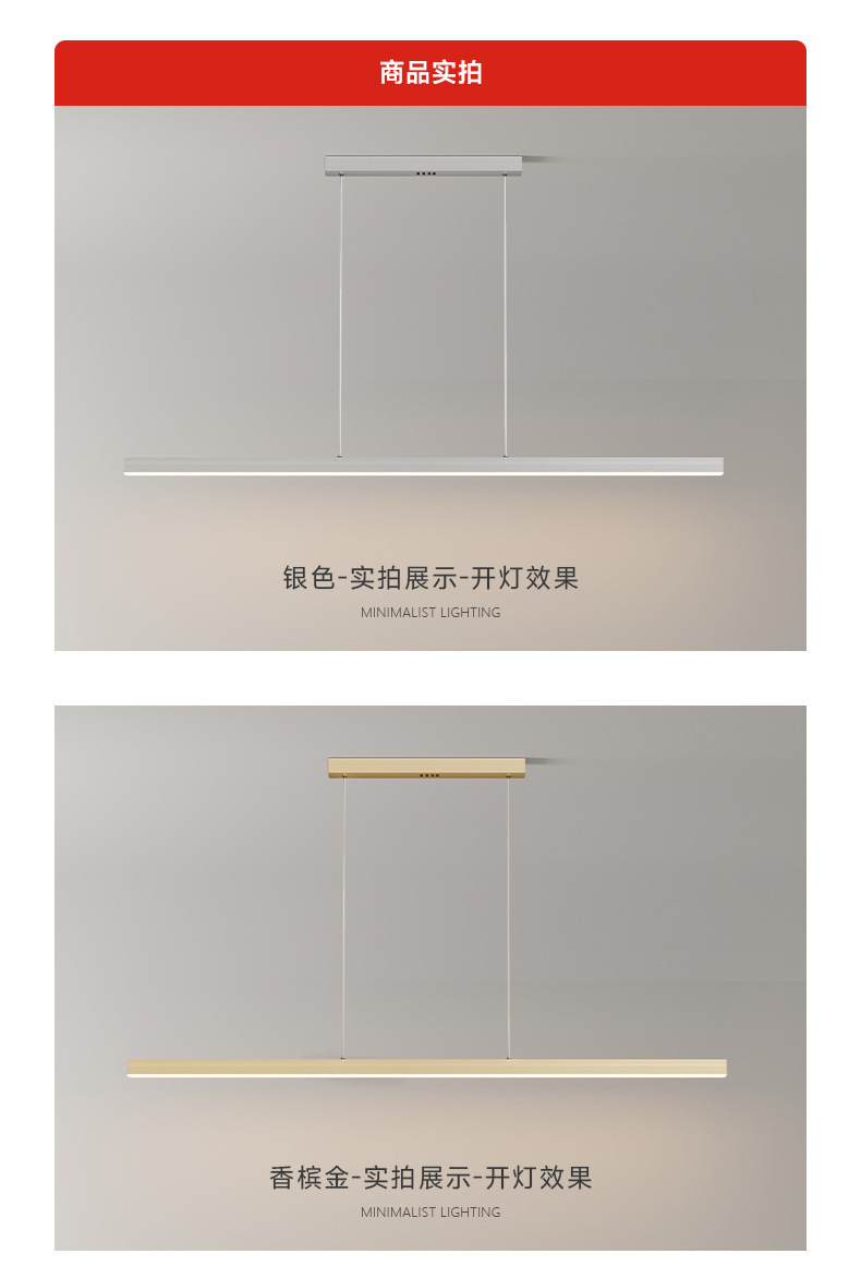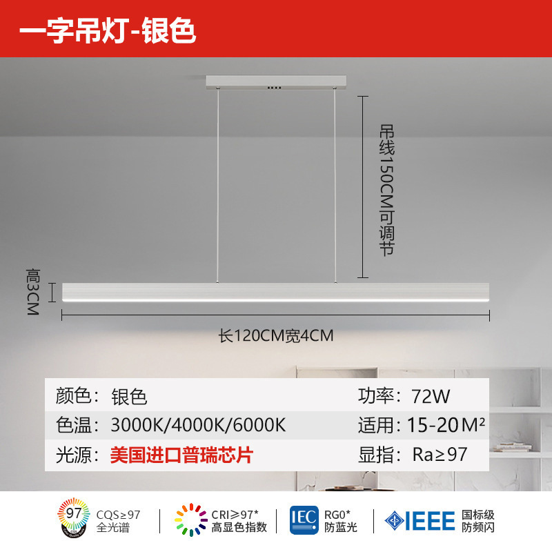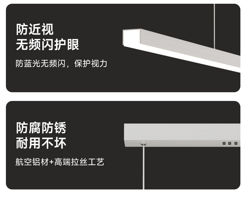 全光谱护眼led餐厅吊灯普瑞极简饭厅餐桌大气一字长条办公室灯具