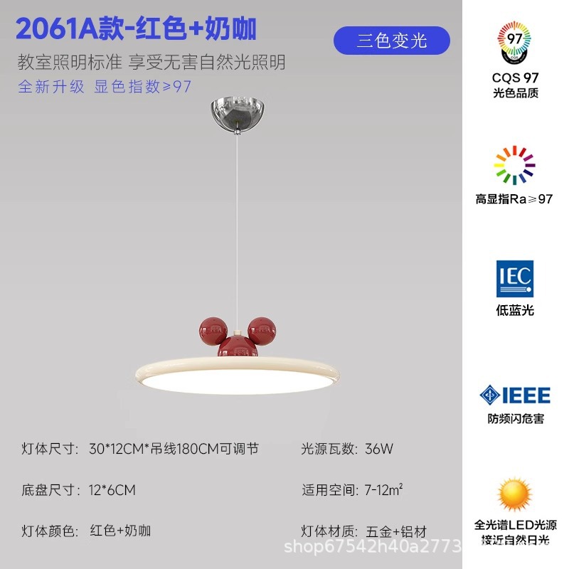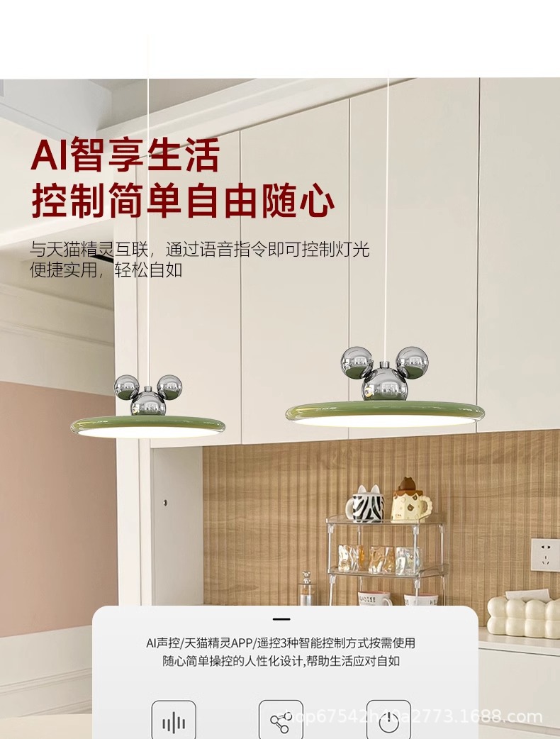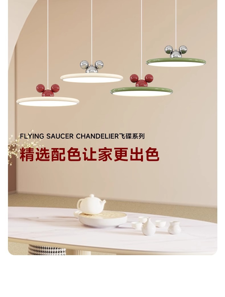 奶油风餐厅吊灯智能全光谱LED餐桌设计米奇灯高显指蓝光护眼吊灯