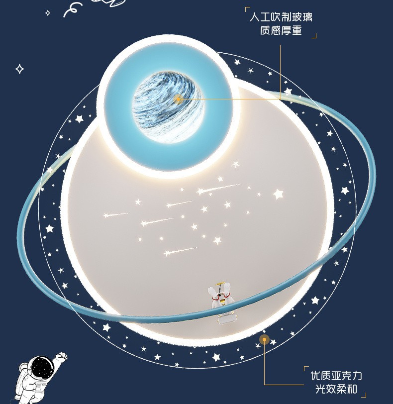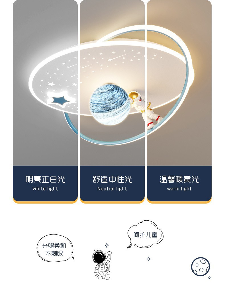 B3P圆形卧室护眼led吸顶灯一体简约2023现代宇航员男女孩房间灯具