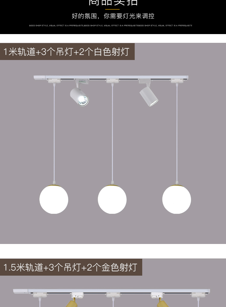 | 1.5 m track +3 18cm chandeliers +2 white spotlights(1.5米轨道+3个18CM吊灯+2个白色射灯) | USD $32.13 | 137 piece available |