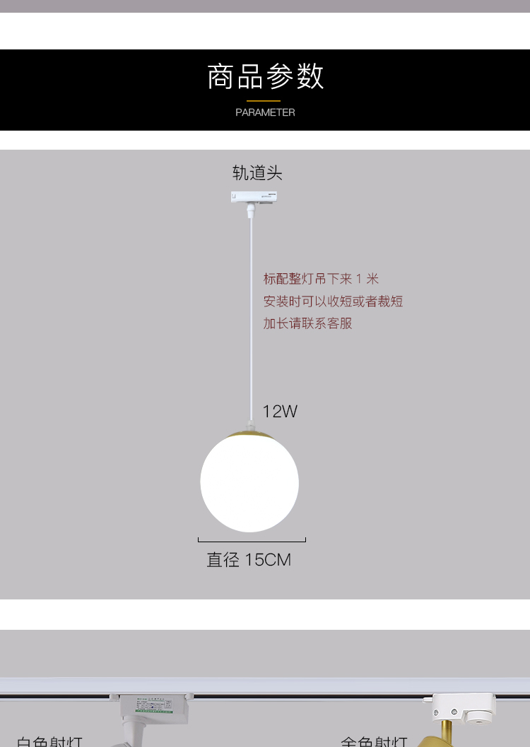 | 1 m track +3 18cm chandeliers +2 white spotlights(1米轨道+3个18CM吊灯+2个白色射灯) | USD $32.13 | 190 piece available |