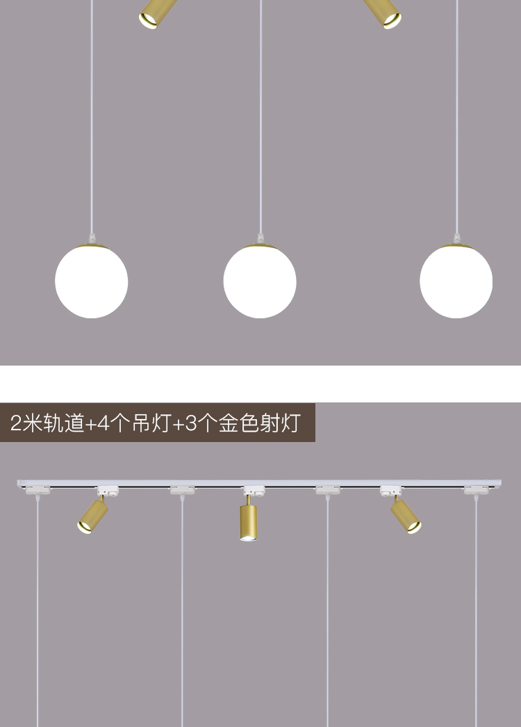 | 2 m track +4 18cm chandeliers +3 golden spotlights(2米轨道+4个18CM吊灯+3个金色射灯) | USD $46.48 | 150 piece available |
