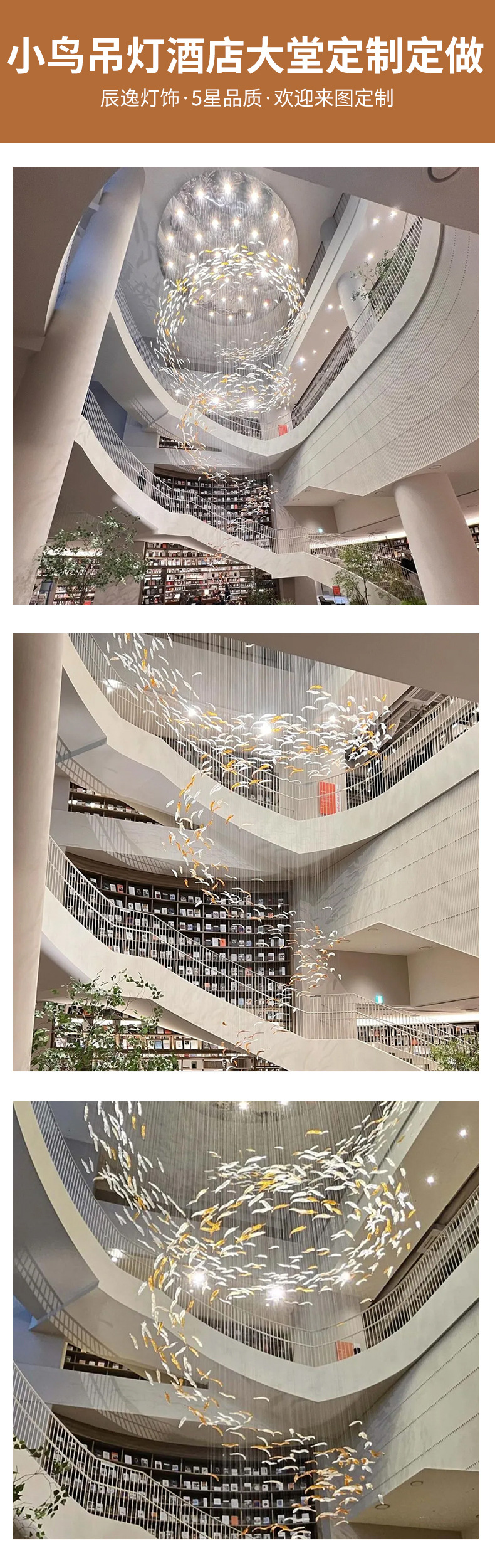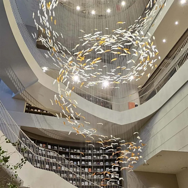 非标工程灯具定制 创意小鸟吊线灯图书馆博物馆大厅酒店大堂灯饰