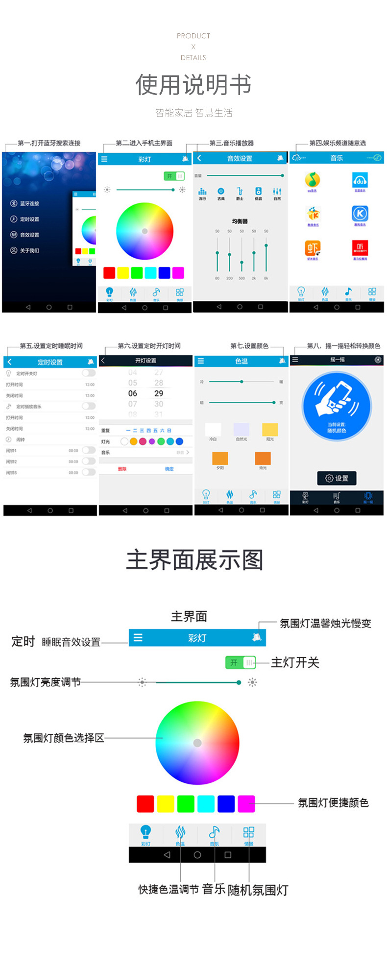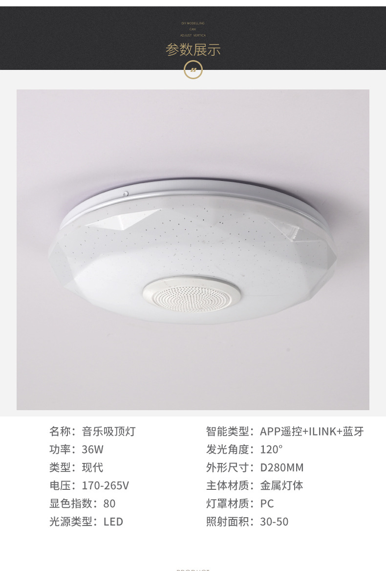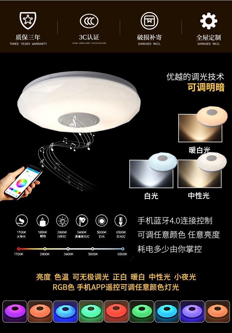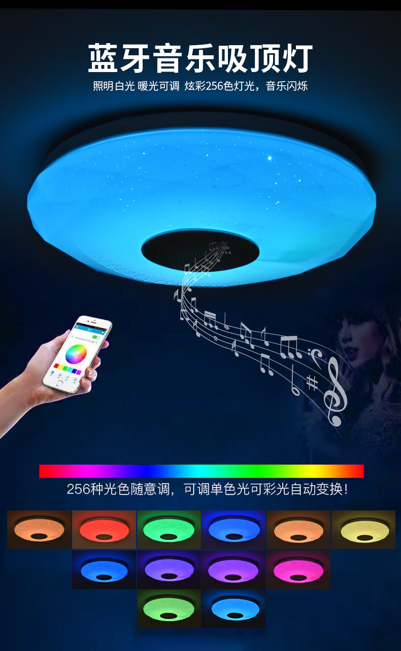 LED智能蓝牙音乐吸顶灯家用照明灯RGB幻彩客厅灯餐厅灯语音功能