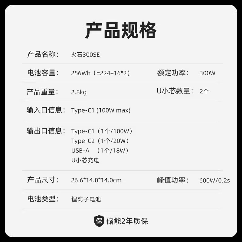 Litheli晓来火石300SE户外移动电源220v大容量电站便携式应急电源